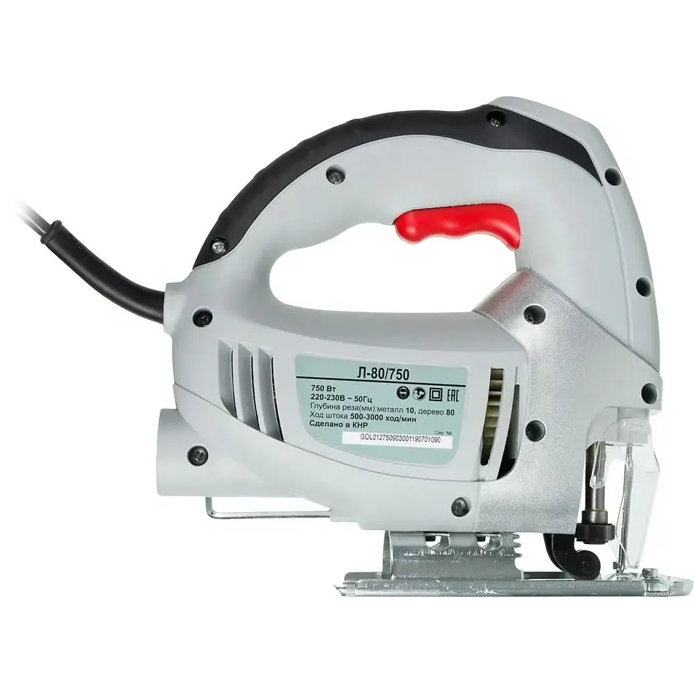 Электрический лобзик Ресанта Л-80/750 подходит для решения задач серьезного уровня. Инструмент, обладающий мощным, 750-ваттным электродвигателем, способен обеспечить глубину пропила древесины до 80 мм. Максимальная глубина пропила металла – 10 мм. Вы также сможете работать с другими материалами.