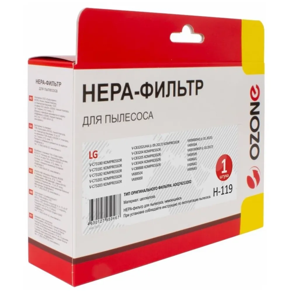 Технические характеристики Хепа-фильтр OZONE H-119 LG