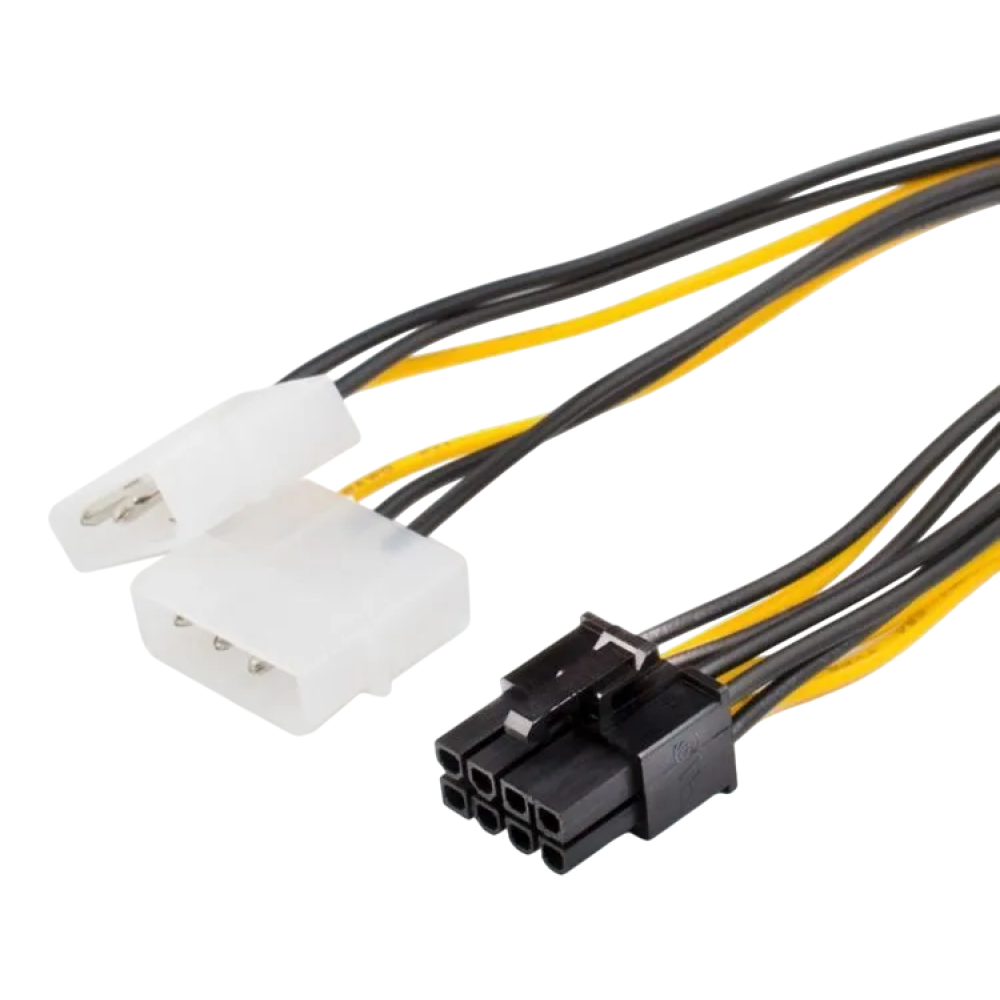 Переходник Molex - Molex 4pin/PCI-E 8-pin, 0.15 м предназначен для увеличения количества разъемов 8PIN PCI-E на блоке питания. Преобразует 2 разъема типа Molex в PCI-E 8-PIN для питания видеокарт.