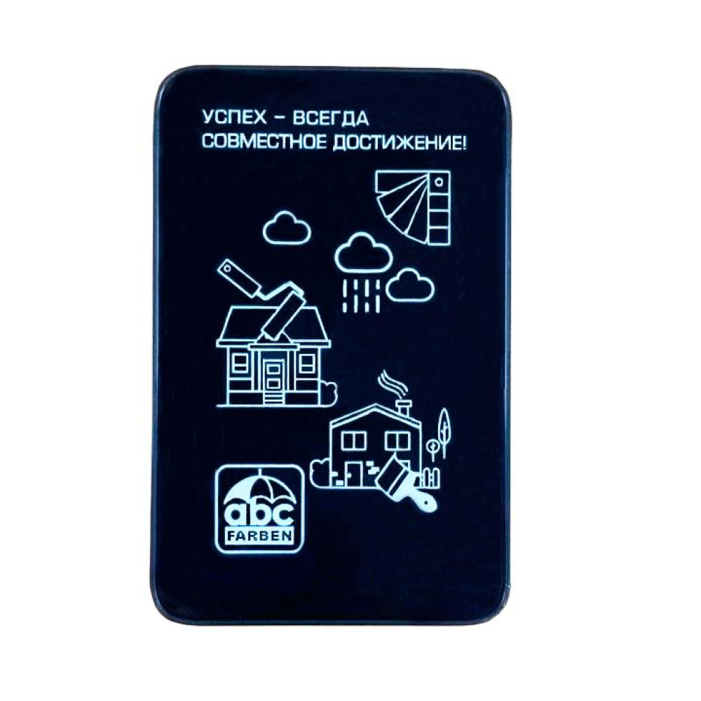 Минималистичный внешний вид, плавность линий корпуса и скругленные уголки образуют идеальную комбинацию, которая гарантирует комфортное пользование аксессуаром. Матовая поверхность с покрытием soft-touch делает возможным выбор широкого спектра логотипов: поддерживается как УФ-печать, так и лазерная гравировка. Встроенная LED-панель позволяет создать эффектную подсветку логотипа посредством лазерной гравировки, удачно завершая композицию аксессуара.
