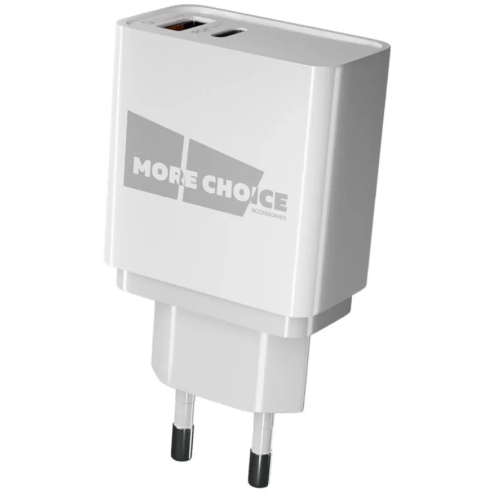 Сетевое зарядное устройство More choice 2USB 3.0A PD 20W+QC3.0 NC71Si белый - производительное и универсальное решение для зарядки различных мобильных и портативных устройств от стандартной сети 220 В – будь то смартфон, планшет, камера или наушники. Зарядка для телефона выполнена в корпусе из высококачественного пластика, устойчивого к различным воздействиям, что обеспечит надежность и долговечность изделия.