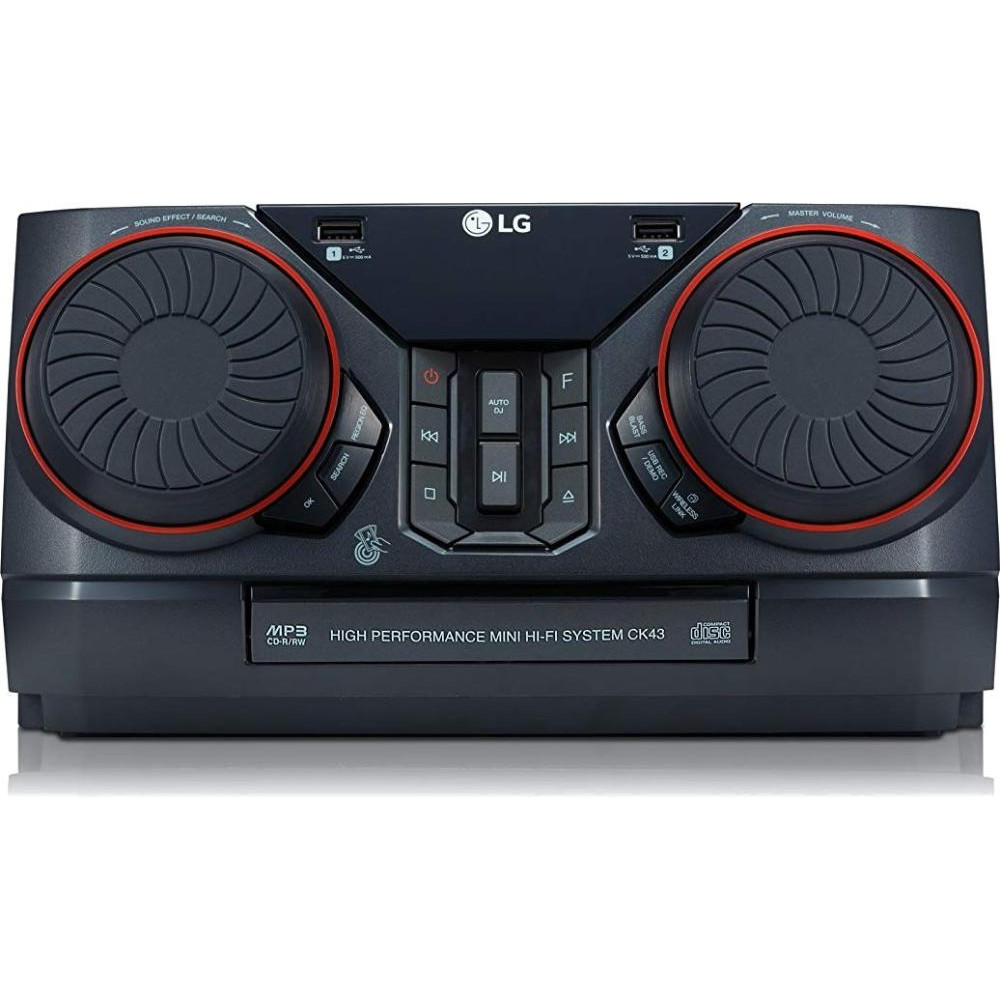 Соответствующая формату 2.0 домашняя аудиосистема LG CK43 порадует вас высоким уровнем качества звука, который, в частности, достигается за счет использования при производстве колонок, которыми укомплектована модель, высококачественного MDF. Мощность аудиосистемы составляет значительные 300 Вт. В качестве источников звука используются компакт-диски и USB-устройства (для установки последних используются два USB-порта). Поддерживаемые форматы файлов – AAC, MP3 и WMA. Предусмотрен и FM-радиоприемник, имеющий память на 50 радиостанций. Прием радиопередач ведется в диапазоне от 87.5 до 108 МГц.