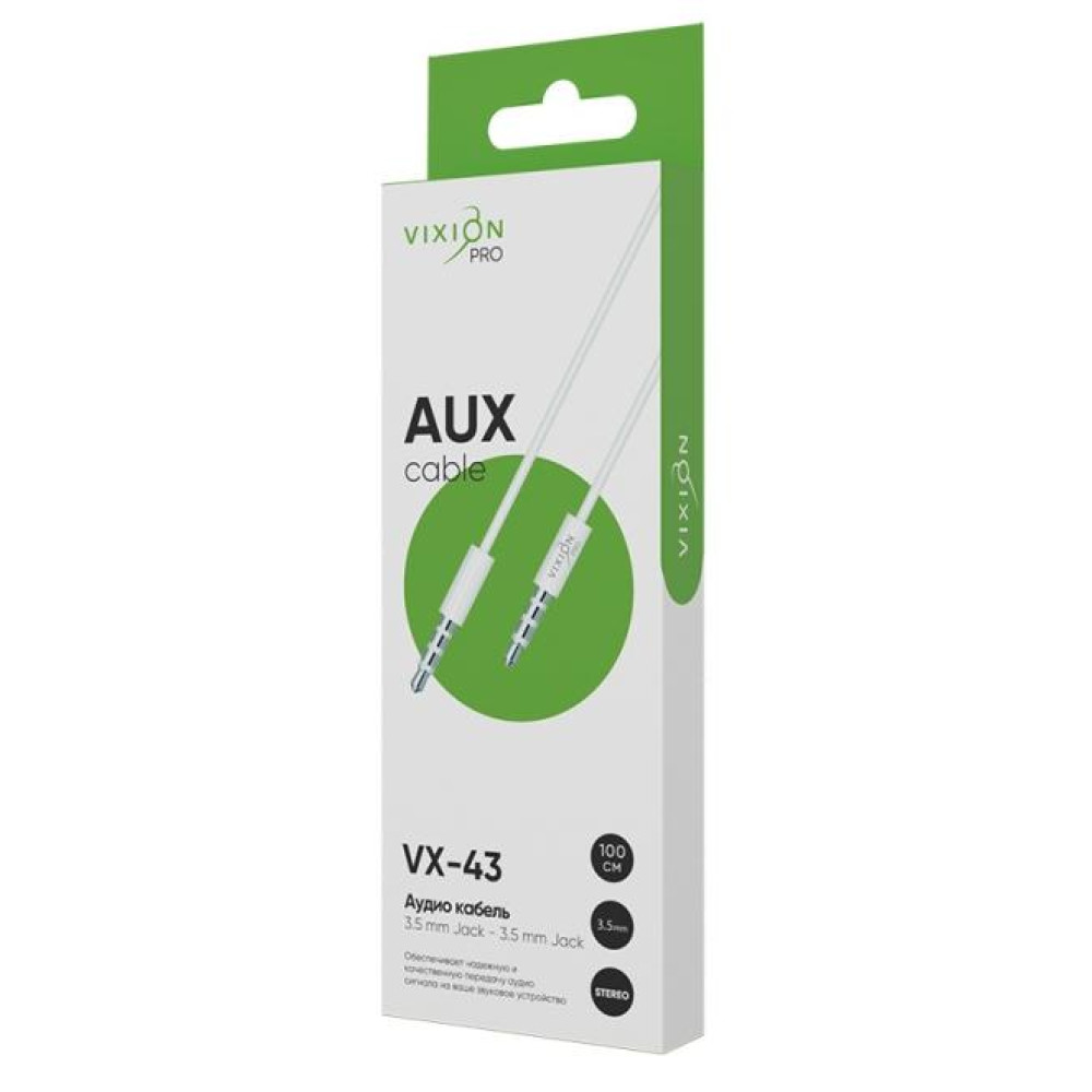 Кабель Jack вилка - Jack вилка 1 м Vixion VX-43 PRO служит для соединения смартфонов, планшетов или MP3-плееров с музыкальными центрами, колонками, автомагнитолами через Jack 3,5 вход.