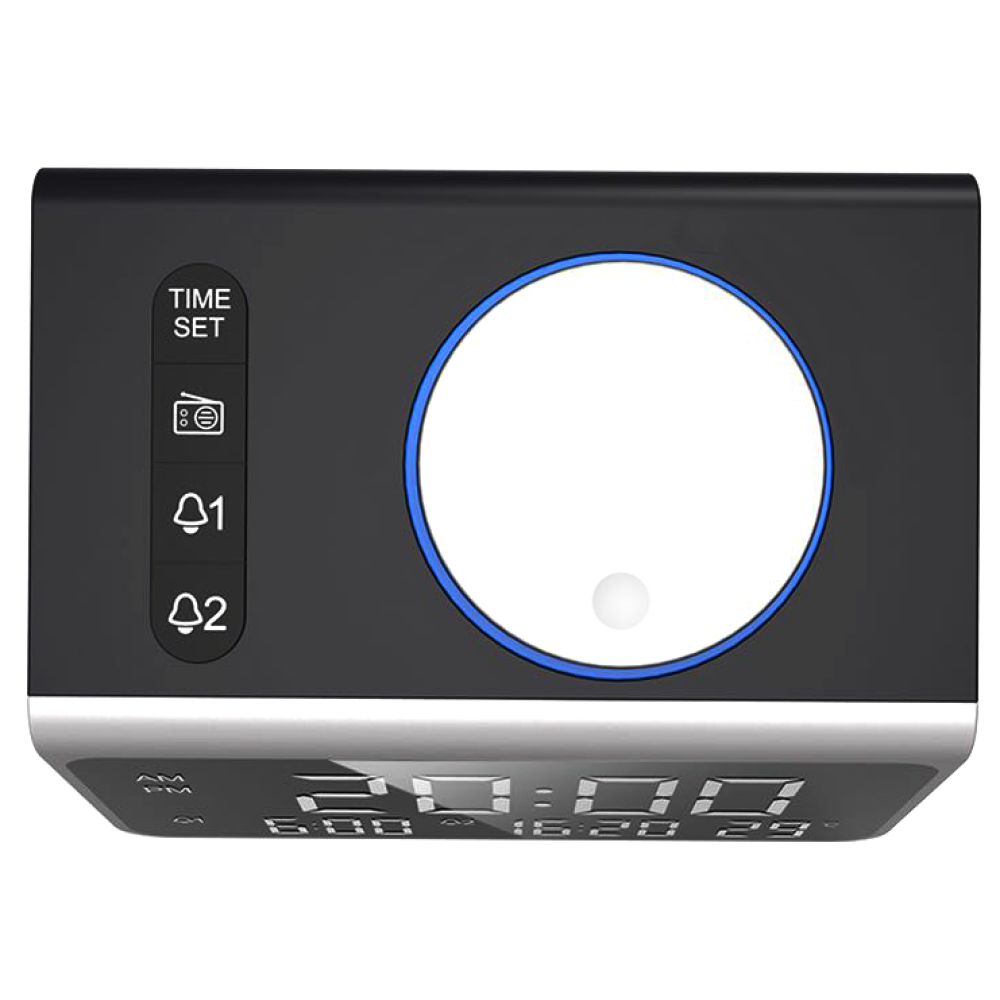 Яркость подсветки с возможностью регулирования и 5 режимами яркости. Так же в радио часах установлен датчик температуры и информация выводится на экран. Радио-часы работают в формате времени 12/24, и имеют отличную функцию, отключение радио по таймеру.