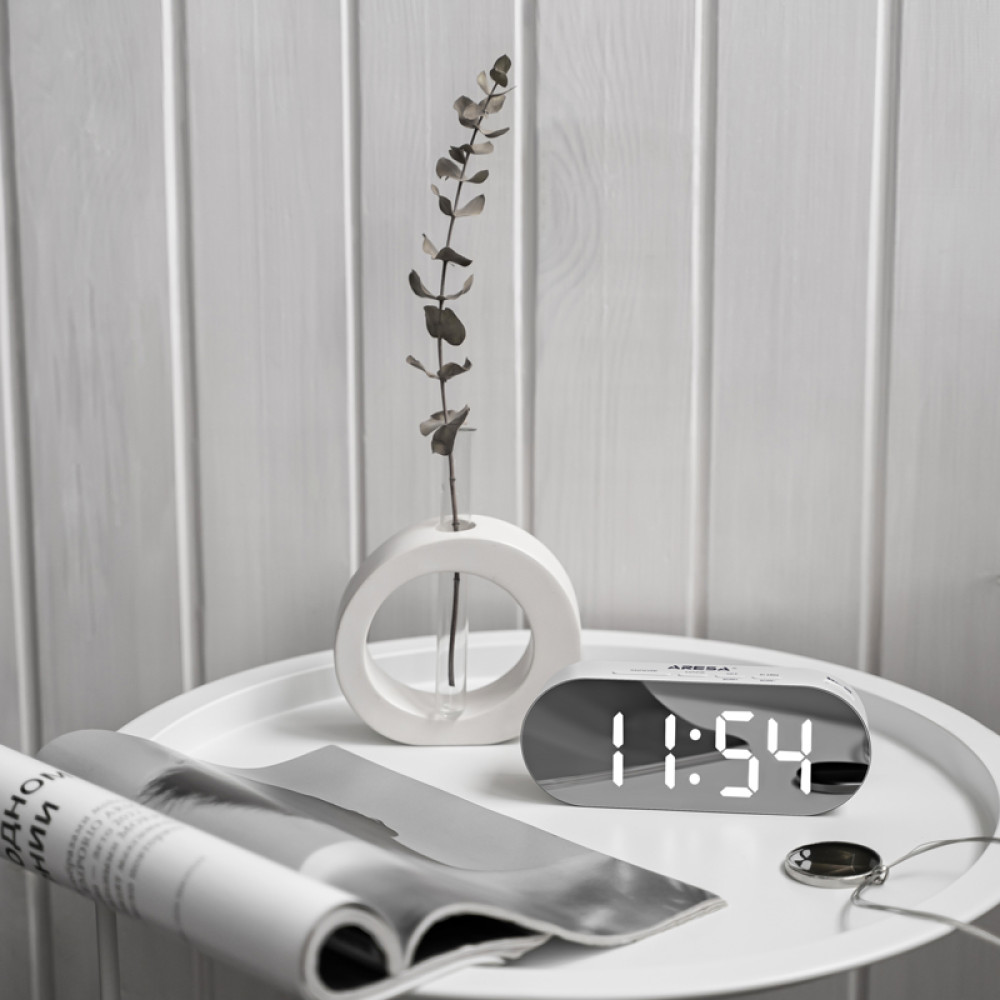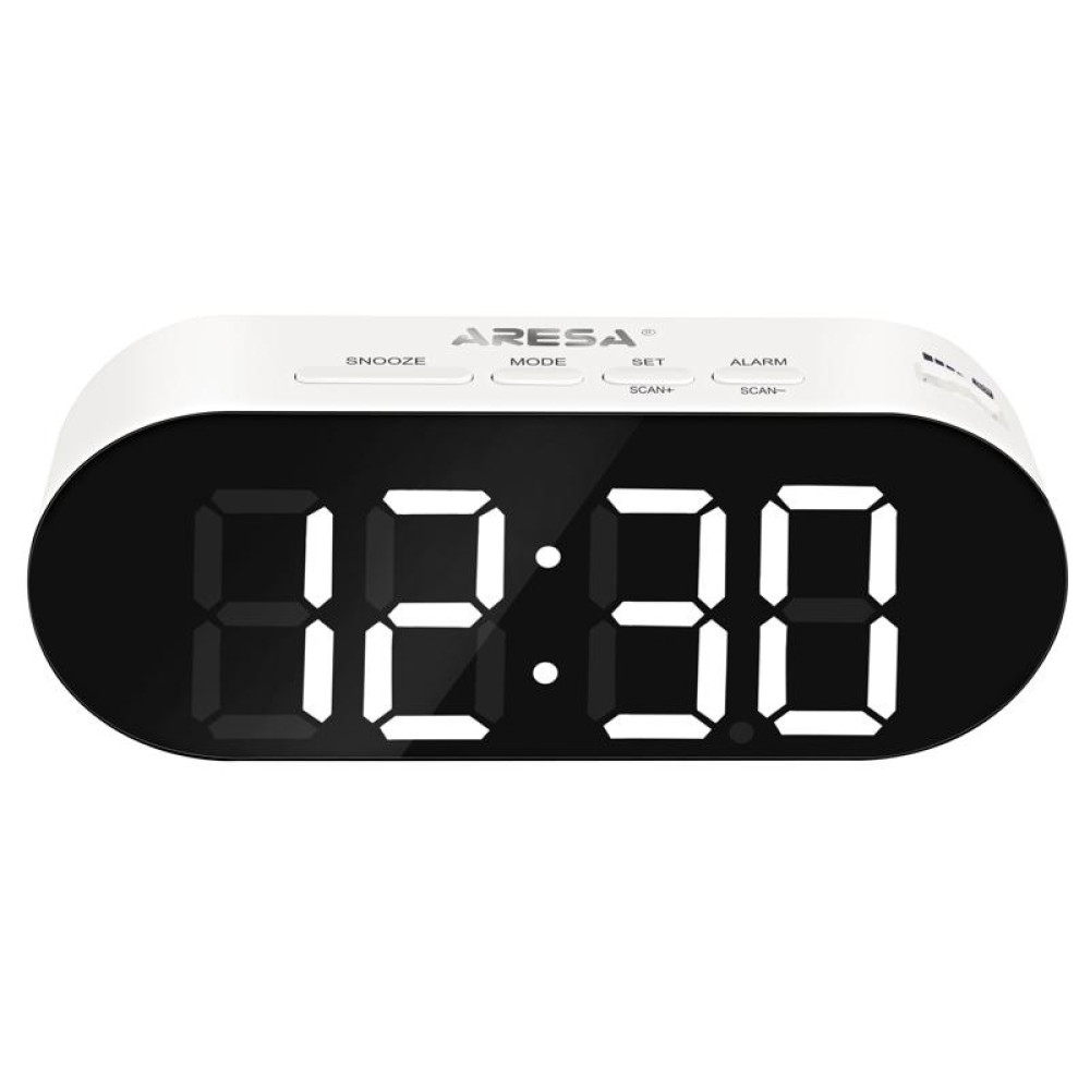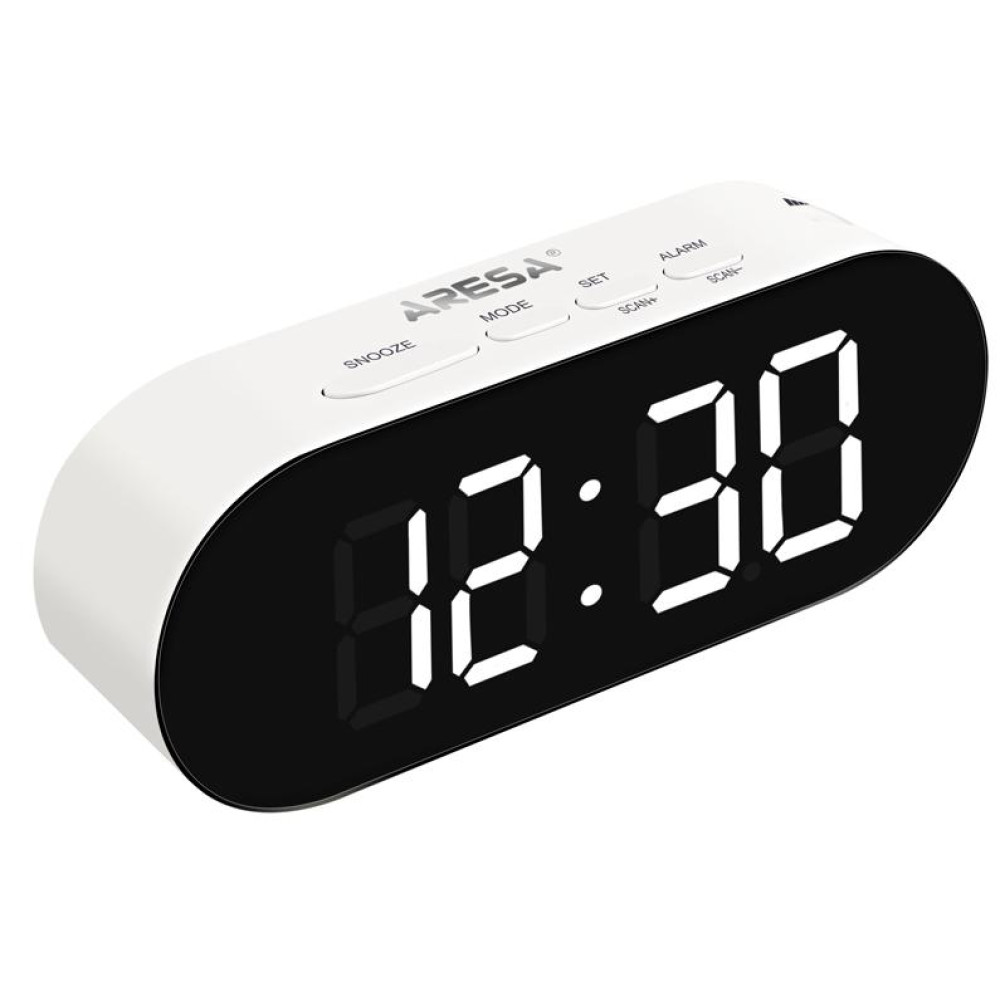 Радиочасы ARESA AR-3910 обладают стабильным приемом в дачных поселках, даже при слабом сигнале станции. Встроенное радио позволяет прослушивать станции, вещающие FM-диапазоне. Здесь чистый и громкий звук. Прибор идеально впишется в любой интерьер и может стать оригинальным и нужным подарком. Работает от сети и от батареек.
