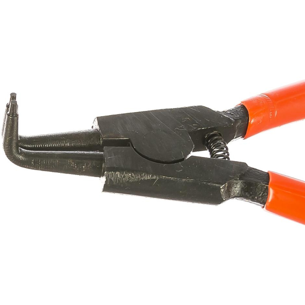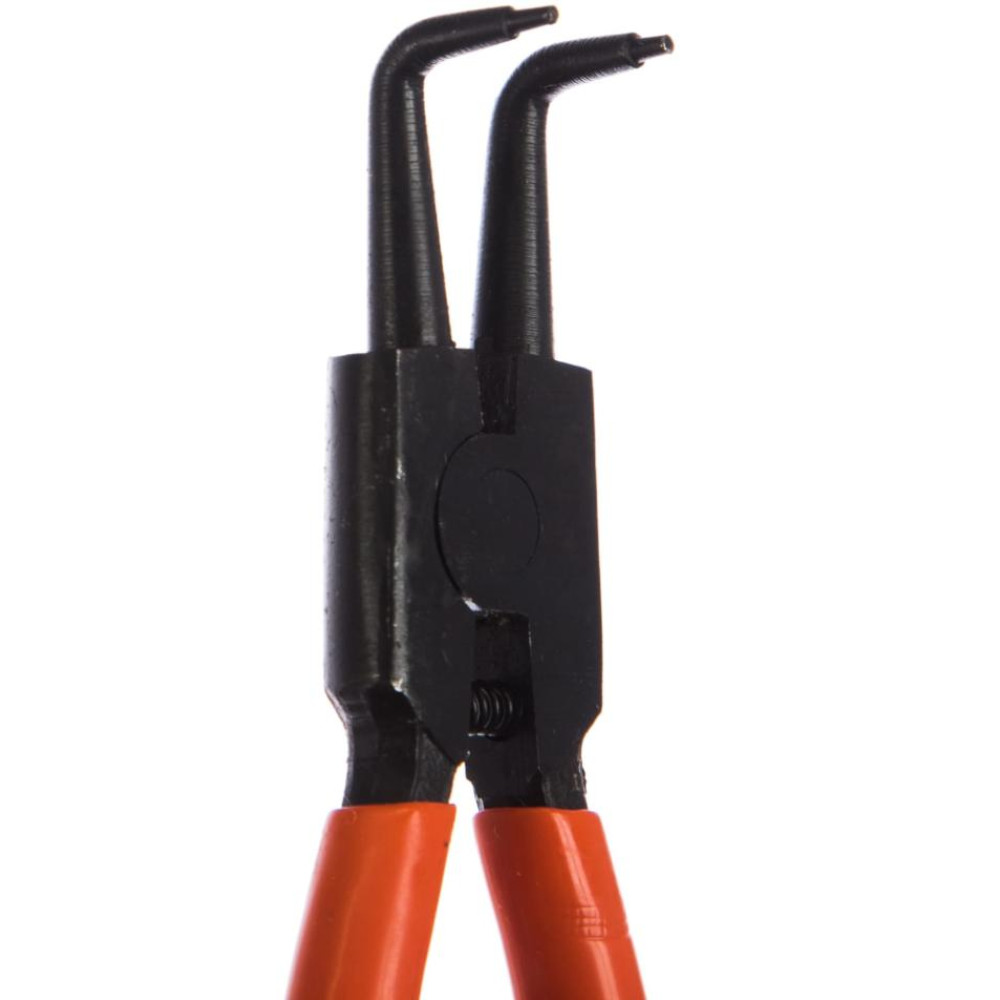 Изогнутые наконечники предотвращают соскальзывание стопорного кольца. Съемник устойчив к механическим повреждениям и деформации, так как при изготовлении используется прочный и долговечный металл. Инструмент также не подвержен значительным нагрузкам и износу. Модель предназначена для снятия и установки внешних стопорных колец в автомобиле.