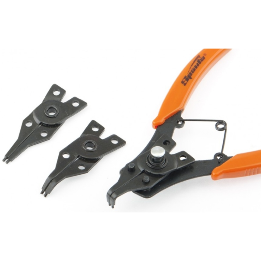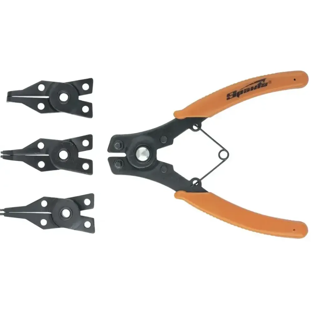 Универсальный съемник Sparta 183505 с насадками, избавляет от необходимости приобретать отдельные инструменты для внешних и внутренних стопорных колец. В зависимости от способа установки насадки съемник способен работать как на сжим, так и на разжим. Используются для колец с отверстиями. Будет полезен в ремонтной мастерской, дома или в гараже.