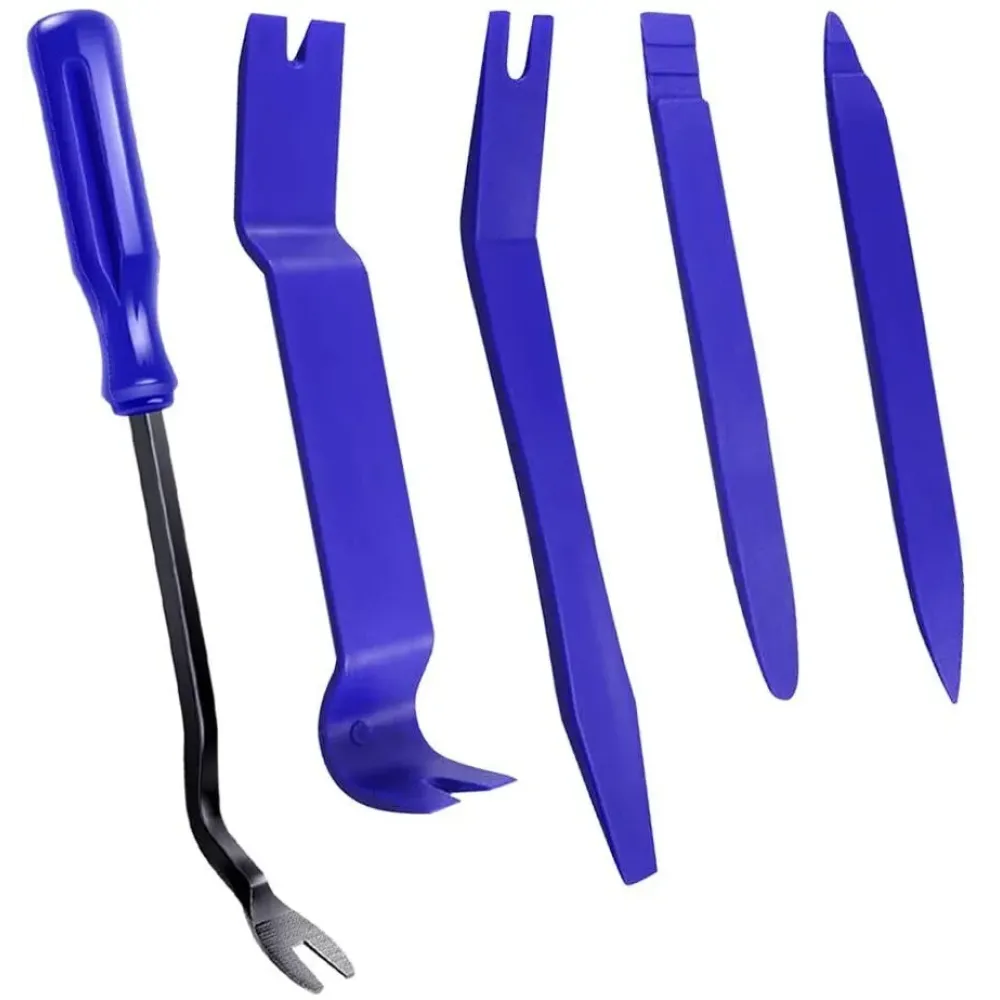 Цветсиний | Комплектациясъемник клипс внутренней обшивки двери - 1 шт/лопатка для снятия пластиковых обшивок и клипс - 4 шт |
