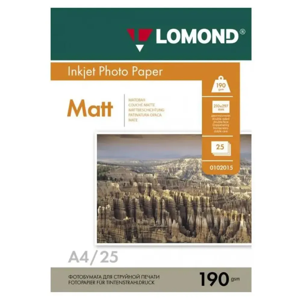 Технические характеристики Бумага LOMOND A4/190г/м2/25л 0102036 белый матовое
