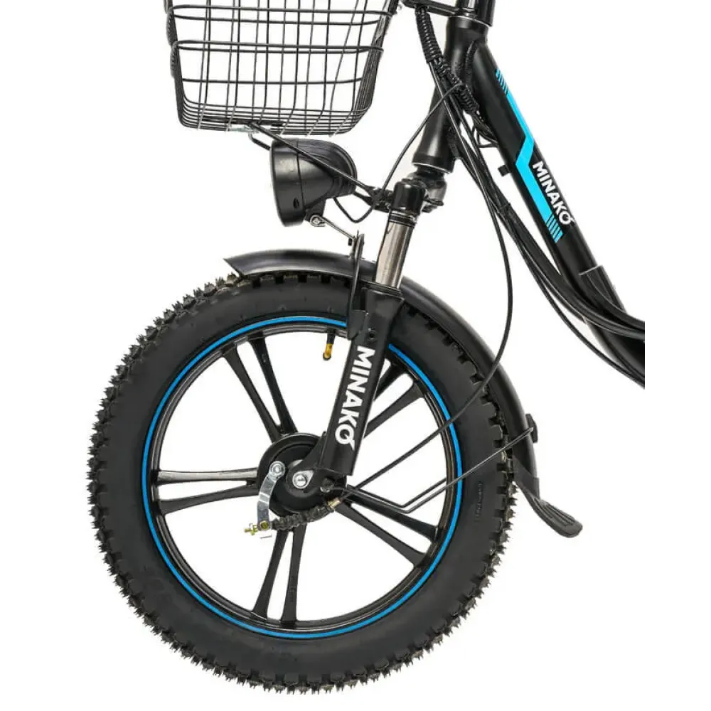 Minako V.8 Pro оснащен алюминиевой рамой и весит 35 кг, что делает его достаточно легким и удобным для маневрирования. Литые колеса и шины размером 18x2.5 обеспечивают отличное сцепление с дорогой и комфортную езду по различным типам местности.