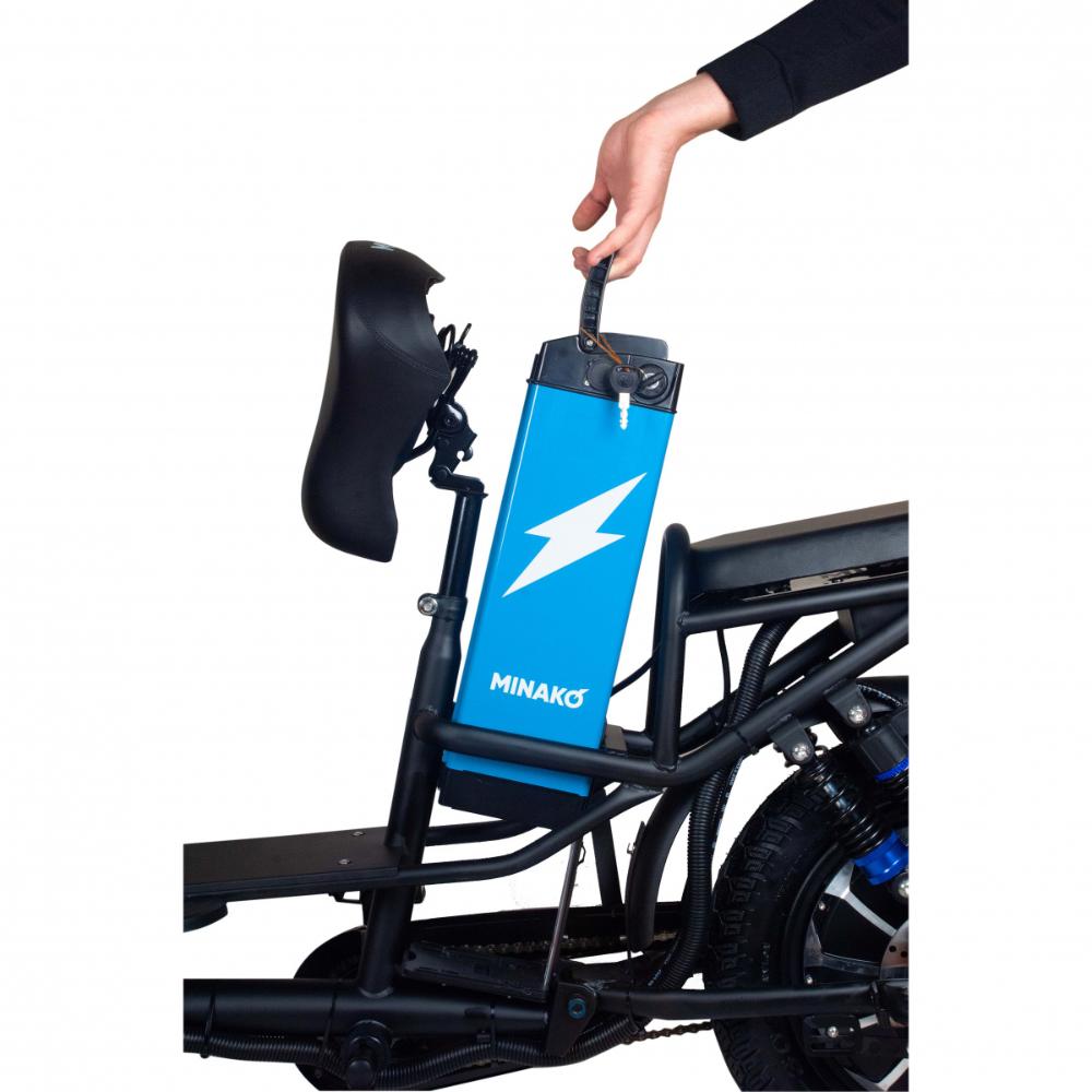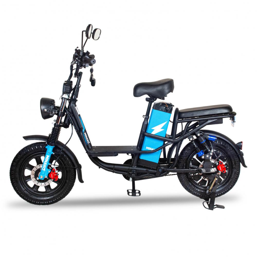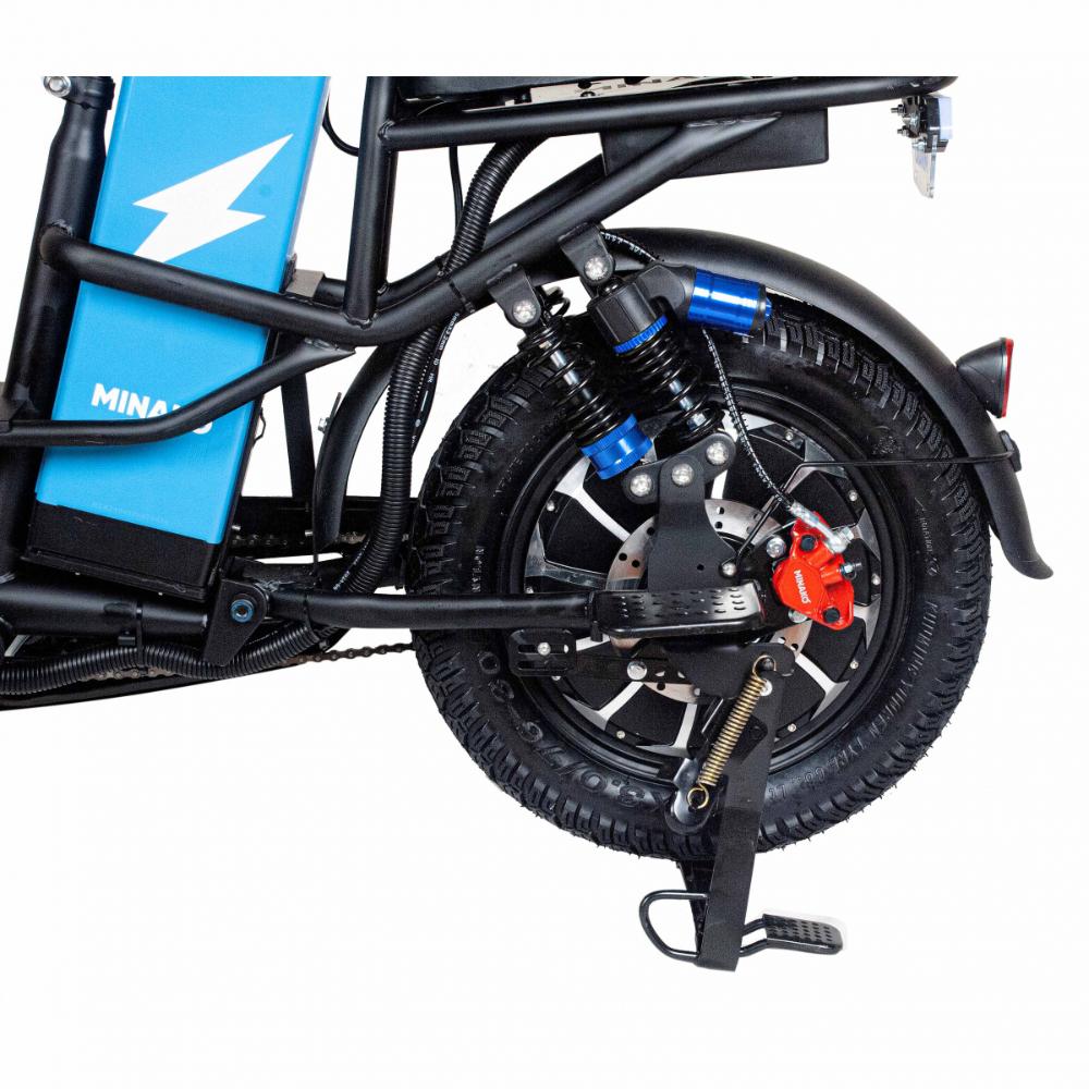 Электровелосипед Minako Monster Pro - городской электровелосипед с диаметром колес 16". Кроссовые покрышки позволяют использовать его на бездорожье и заснеженной дороге. Велосипед выдерживает нагрузку до 150 кг, что позволяет перевозить тяжелые и объемные грузы.
