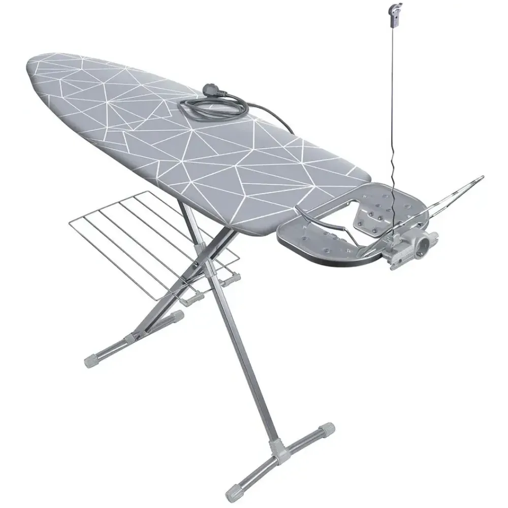 Конструкция доски имеет плавную фиксацию высоты и позволяет отрегулировать ее под рост человека. Встроенная розетка с электрическим удлинителем дарит дополнительный комфорт, предоставляя возможность поставить конструкцию в любом месте.