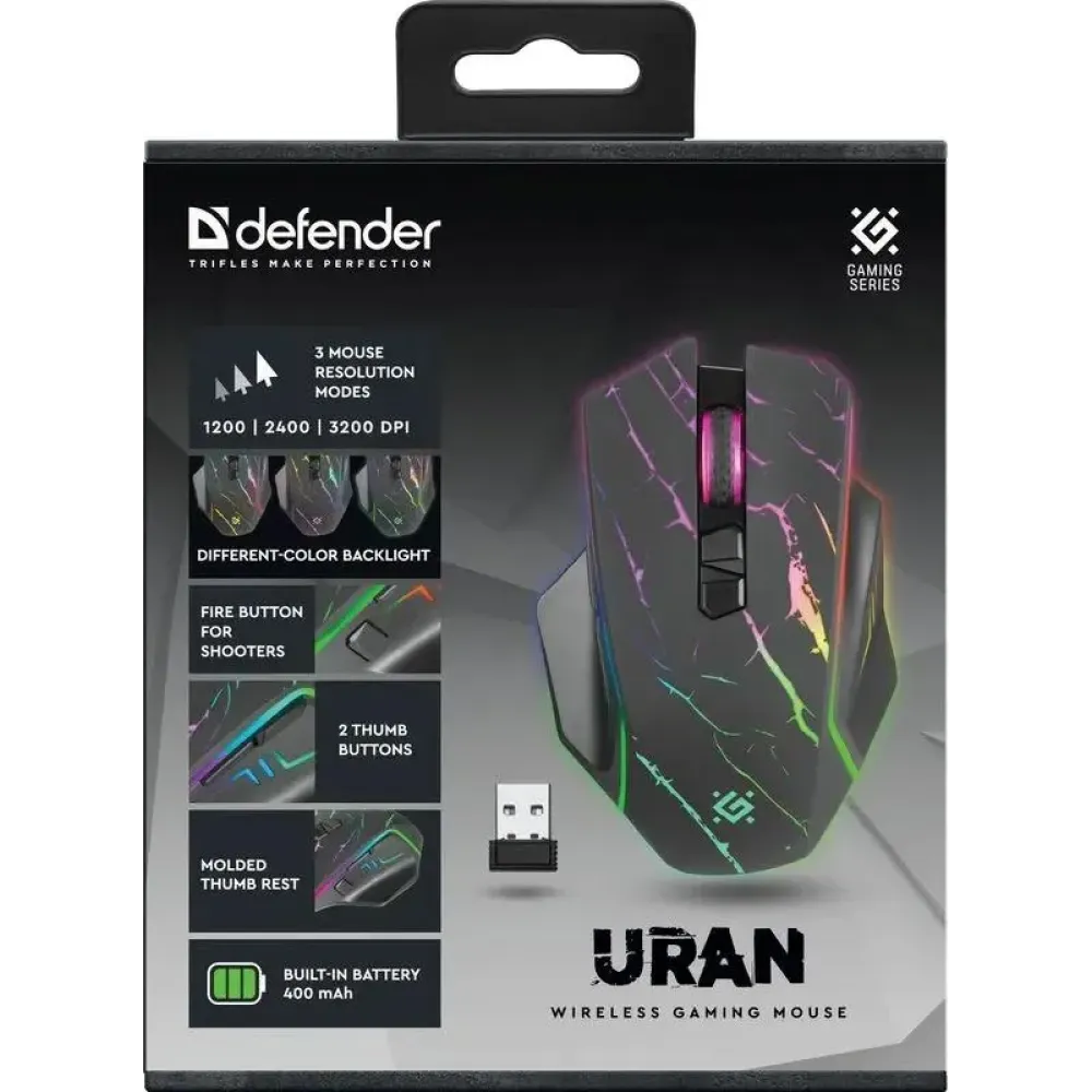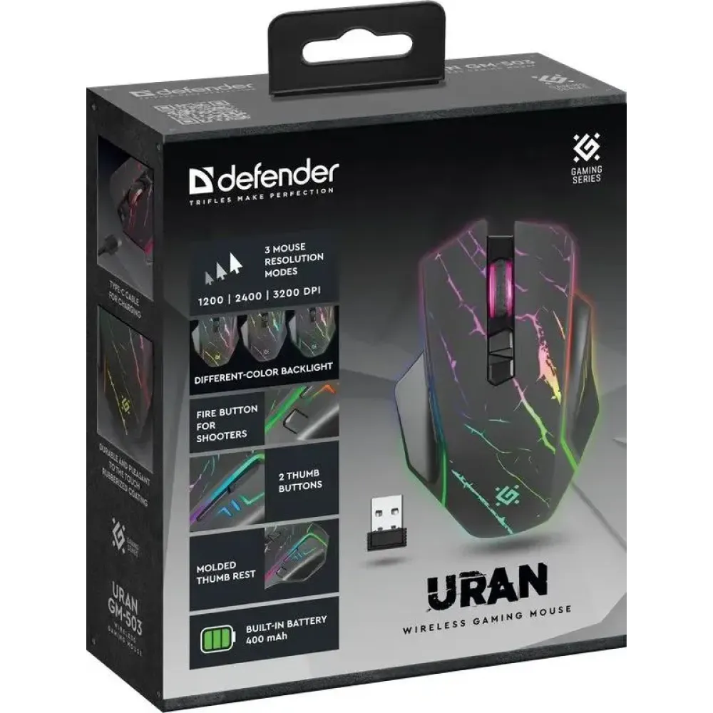 Мышь Defender Uran GM-503 черный с яркой подсветкой придётся по душе даже самым требовательным геймерам. Кнопка Fire для шутеров и две дополнительные боковые кнопки в сочетании с эргономичным дизайном обеспечивают не только эффективность, но и максимальный комфорт и удовольствие во время игры.