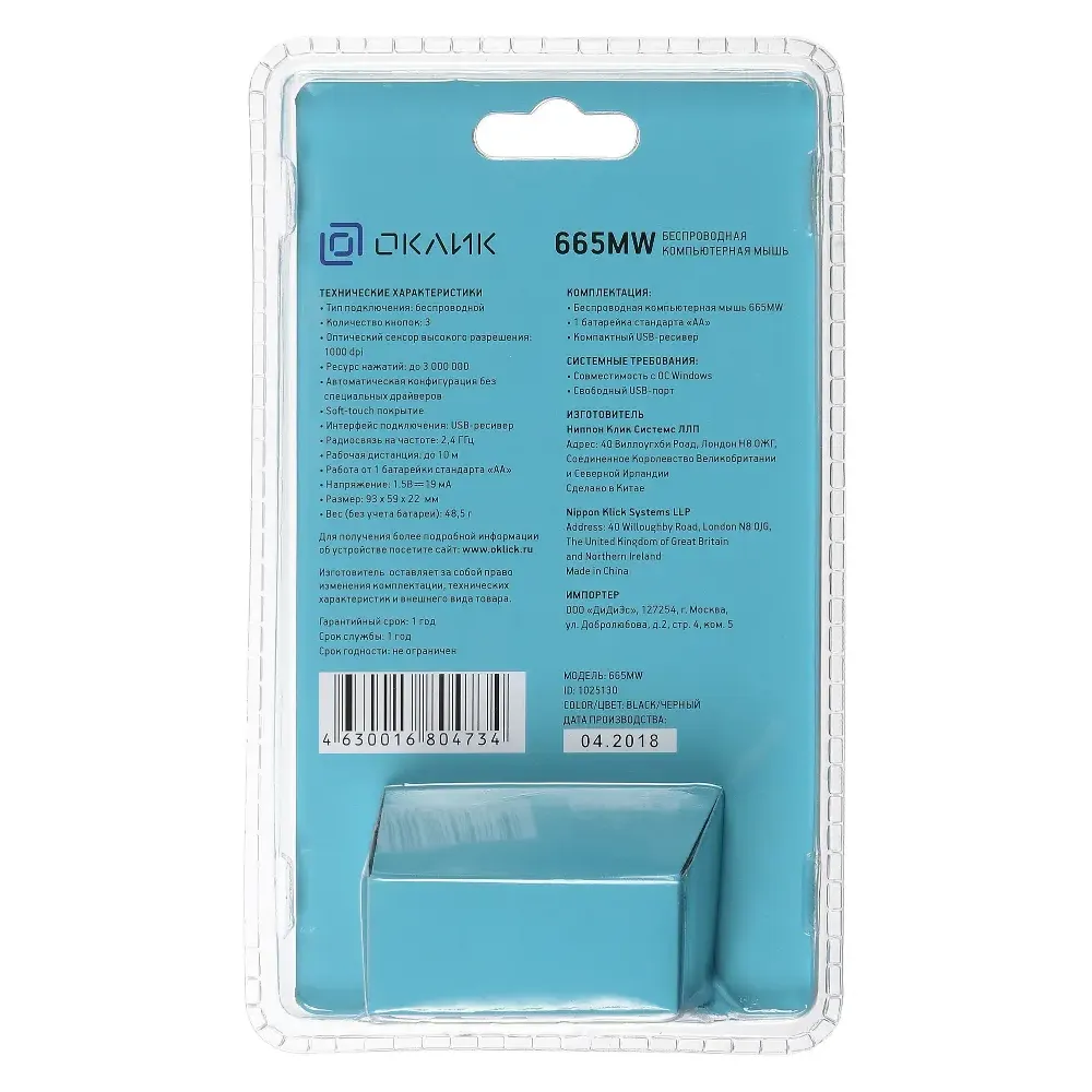 Мышь OKLICK 665MW с оптическим сенсором разрешением 1000 dpi обеспечивает точное позиционирование курсора при любых скоростях перемещения. Беспроводная модель подключается к ПК посредством радио-соединения с помощью компактного USB-ресивера. Колесо прокрутки и кнопки с высокой чувствительностью мгновенно реагируют на манипуляции и рассчитаны на 3 млн кликов. Удобство использования обусловлено возможностью работы на удалении от компьютера на расстояние до 10 метров. Для питания используются стандартные батарейки стандарта АА.