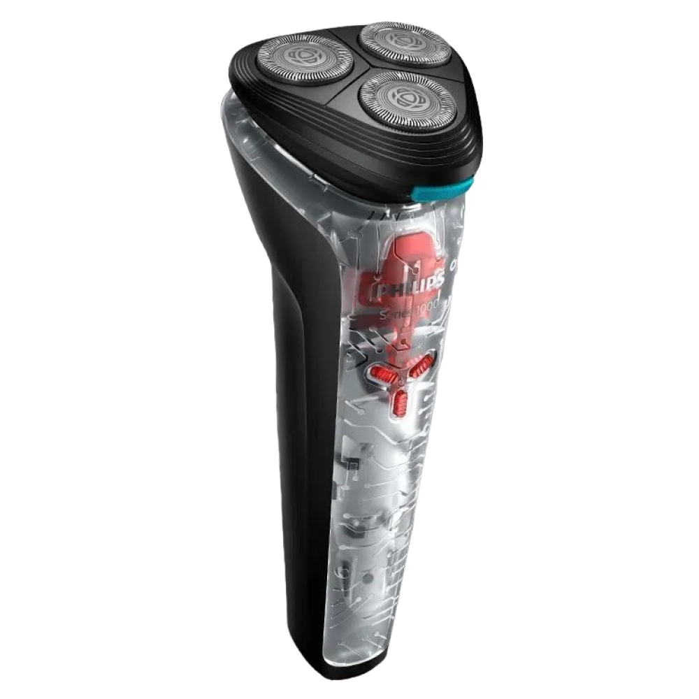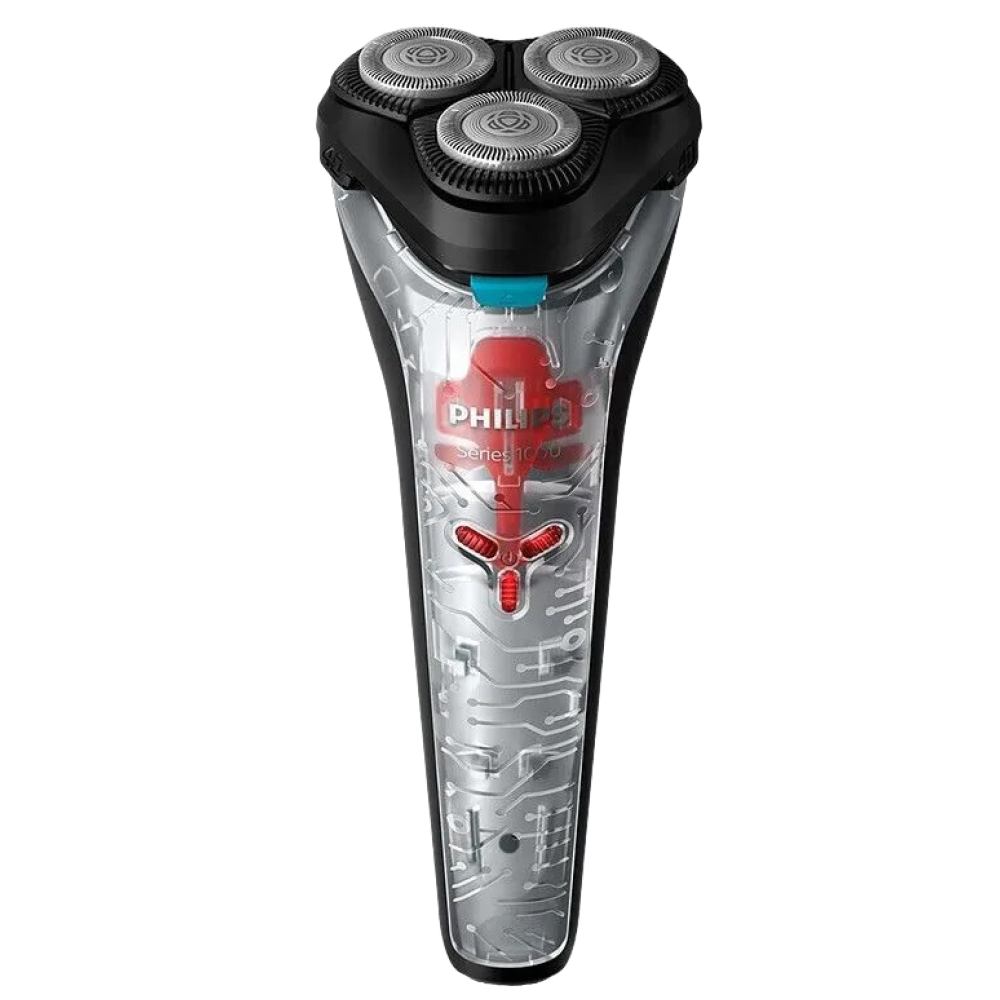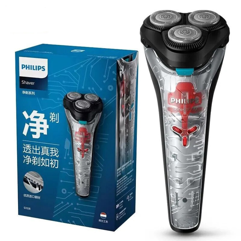 Бритва PHILIPS S-1118/02 с 3 плавающими головками, светодиодным дисплеем и USB-кабелем предназначена для сухого или влажного бритья, подравнивания волос на усах, бороде или висках на лице человека.