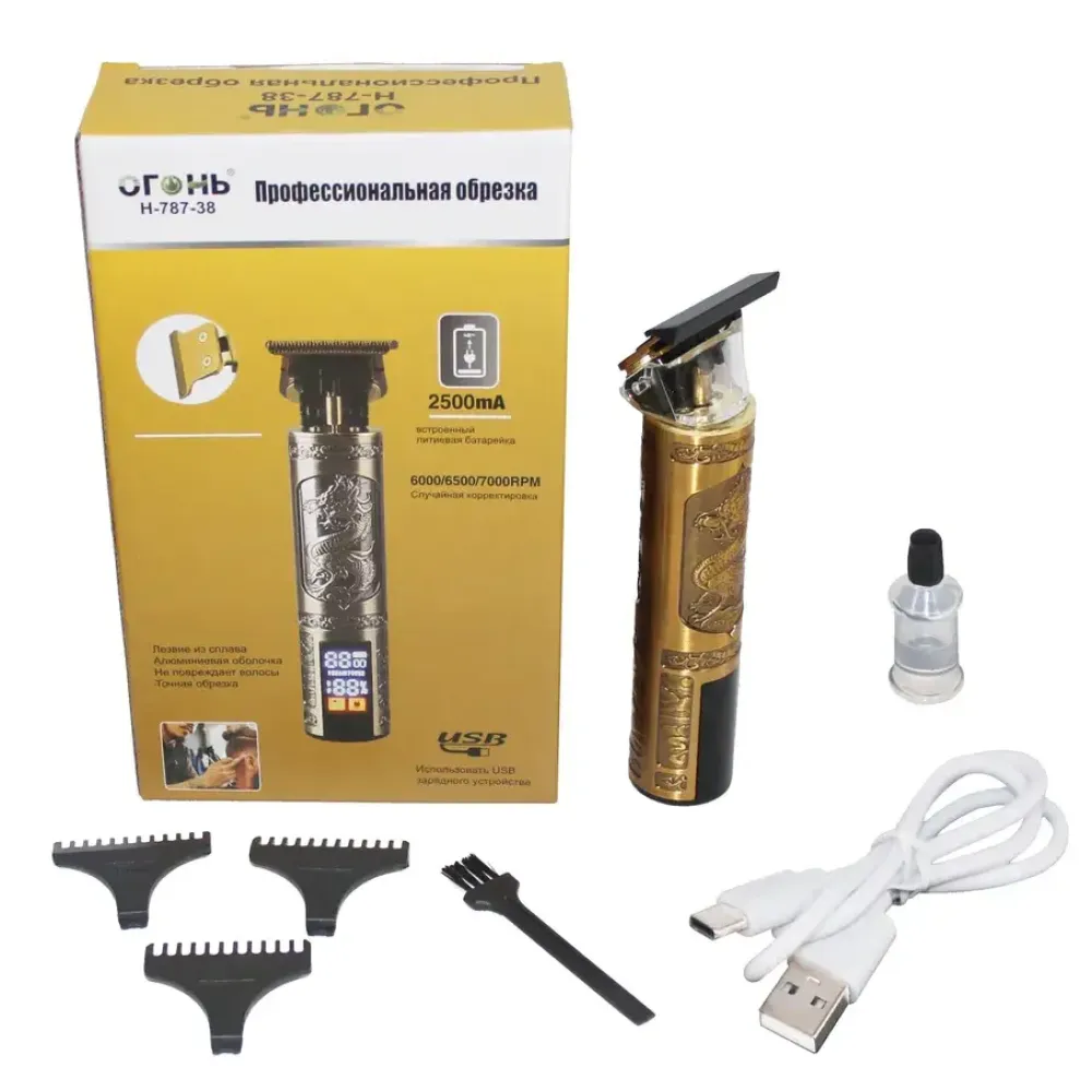 Технические характеристики Машинка для стрижки (триммер) Огонь H-787-38, дисплей, дракон, золотой
