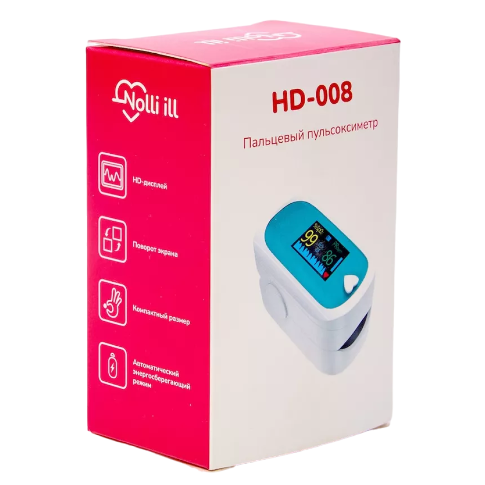 Пульсоксиметр NN HD-008 измеряет сатурацию кислорода с верхней границей 100%. Также он позволяет получить информацию о частоте пульса в диапазоне 30-250 ударов в минуту.