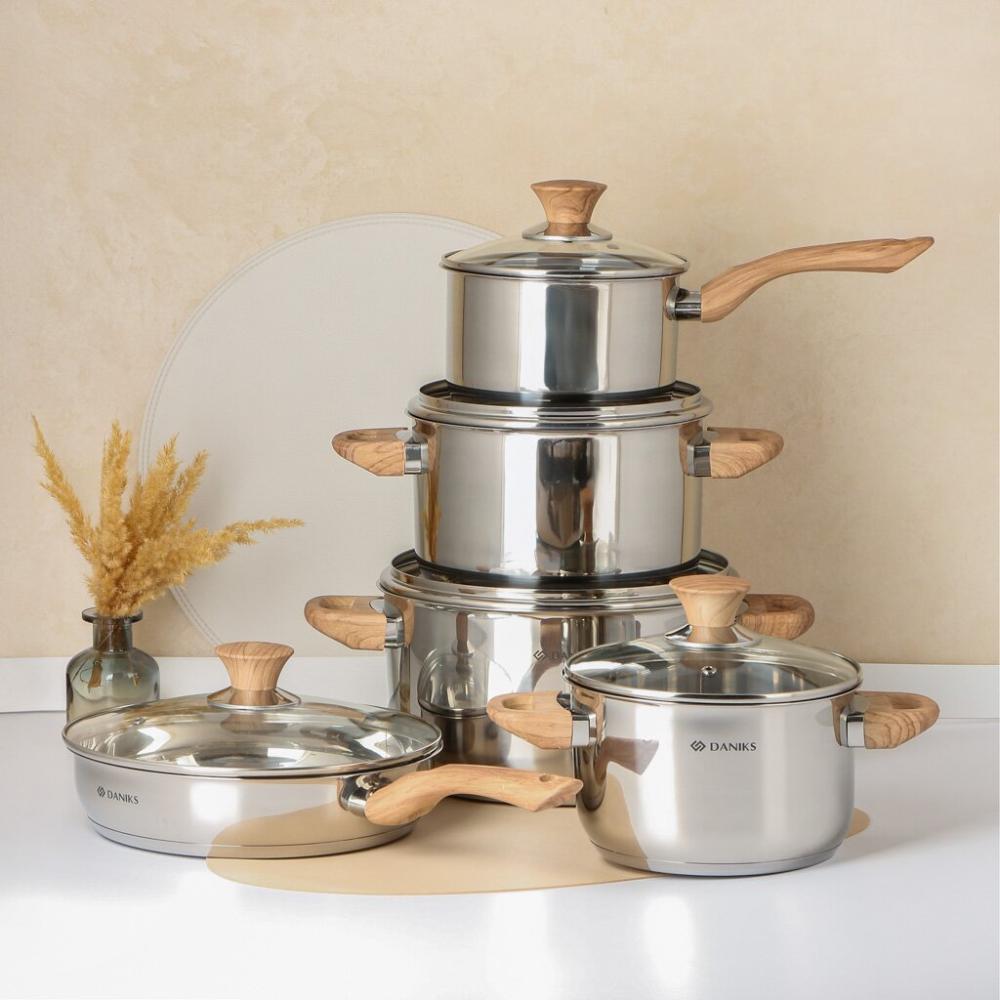 Набор посуды DANIKS "Осло" (GS-01147-10PC)(478894) станет незаменимым помощником на вашей кухне, обеспечивая удобство и надежность в каждом приготовлении. Изготовленный из высококачественной нержавеющей стали, он гарантирует долговечность и эстетическую привлекательность, а также подходит для использования на всех типах плит, включая индукционные.