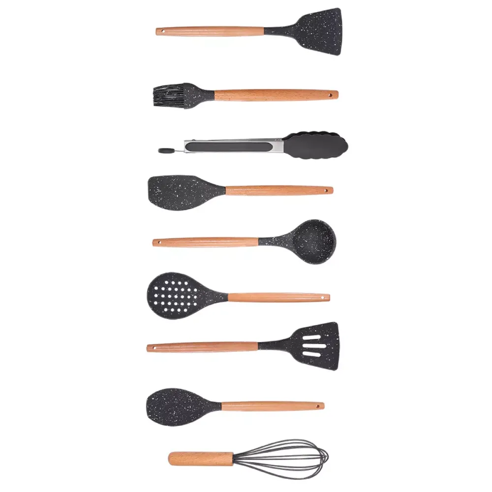Комплектация подставка/лопатка для жарки/лопатка кондитерская/лопатка с отверстиями/ложка для салатов/кисточка/щипцы/половник/шумовка/венчик