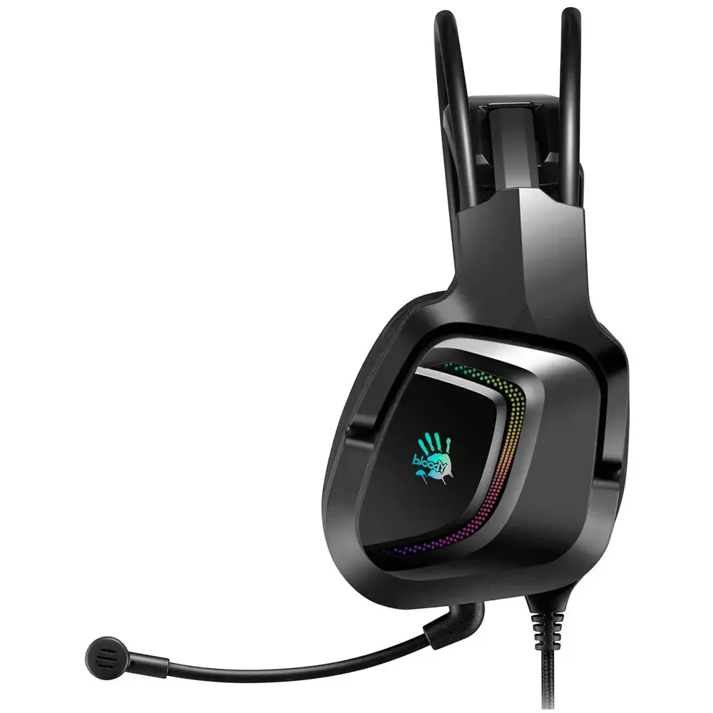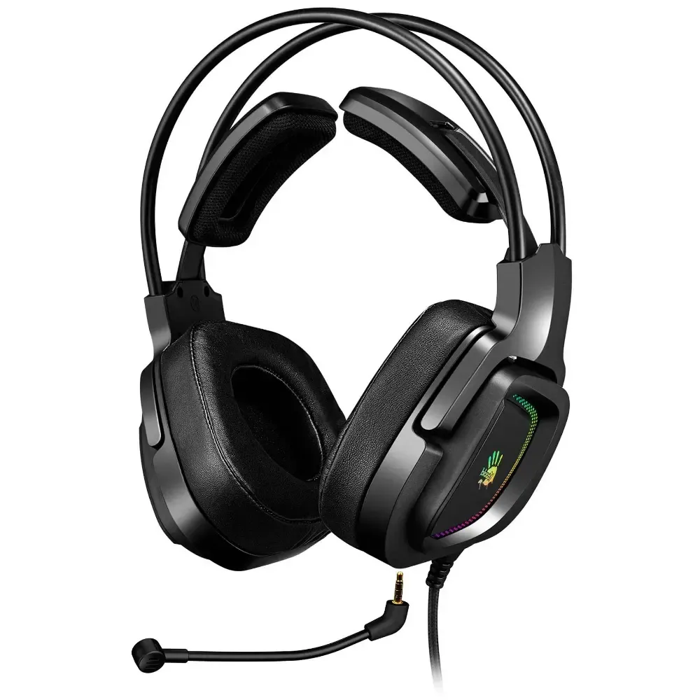 Гарнитура A4 Bloody G575 черный 2м с системой виртуального объемного звучания 7.1 помогает погрузиться в захватывающий игровой процесс. В ней установлены мощные 50-мм динамики, которые формируют детализированный и насыщенный звук. Однонаправленный микрофон с функцией шумоподавления, расположенный на подвижной штанге, отвечает за передачу чистого голоса без искажений.