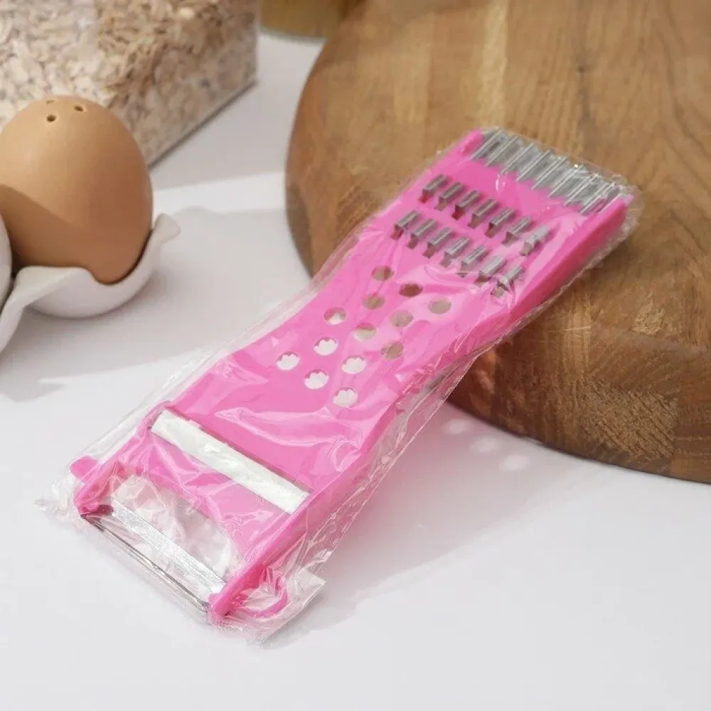 Овощечистка Доляна, с тёркой и шинковкой (647249) легко справляется с фруктами, овощами, корнеплодами, сделает процесс приготовления пищи лёгким, быстрым, комфортным. Овощечистка проста в применении, не требует много места для хранения, легко моется, долговечна.