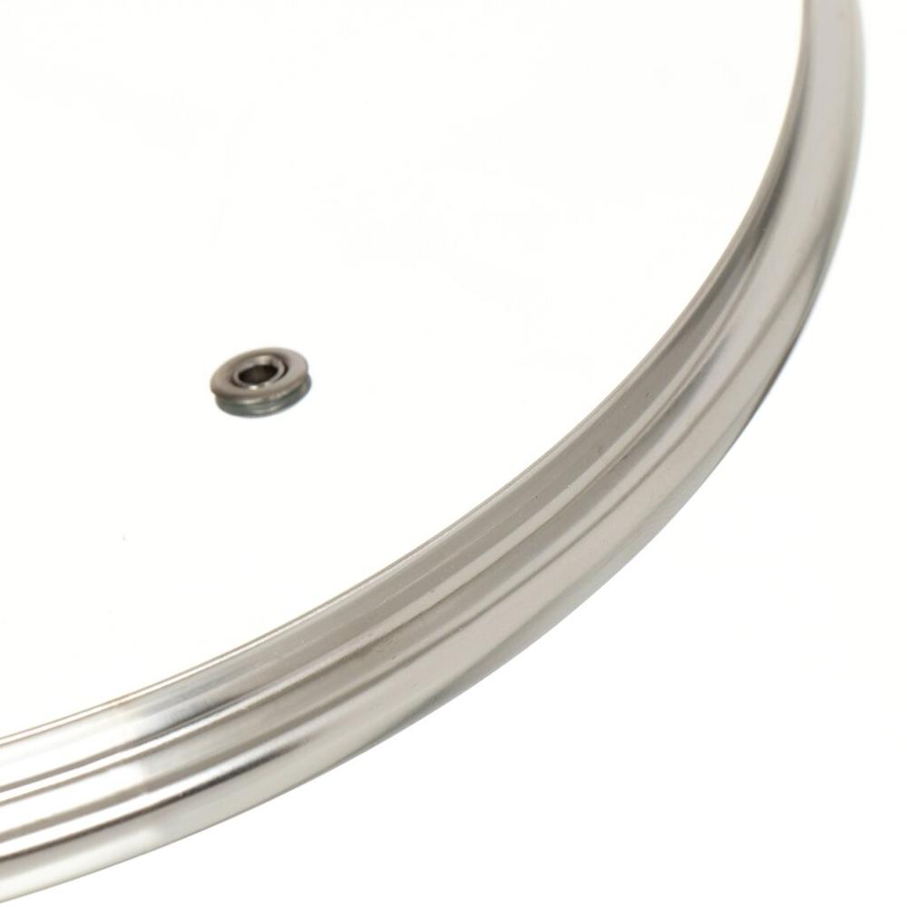 Крышка DANIKS из упрочненного стекла, выдерживающего большие нагрузки и перепады температуры. Гладкая поверхность крышки легко очищается от жира и копоти. Обод из нержавеющей стали придает крышке дополнительную прочность и обеспечивает более плотное прилегание.