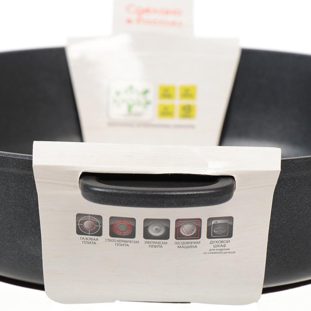 В производстве литой антипригарной сковороды Горница с2851а используется высококачественное сверхпрочное антипригарное покрытие, которое наносится методом напыления, что обеспечивает долговечность покрытия и высокую надежность. При нагревании посуды также не выделяются вредные токсичные и канцерогенные вещества, использование такой посуды абсолютно безопасно.