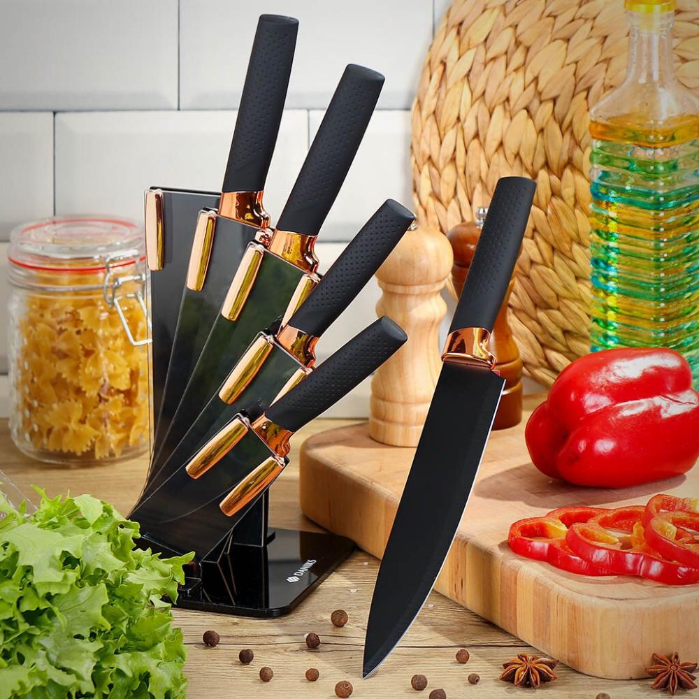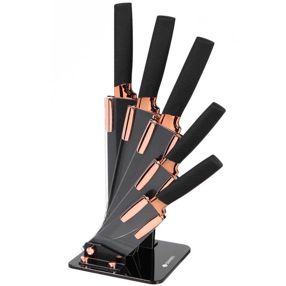 Набор ножей DANIKS Medina включает 5 режущих предметов и подставку. Лезвия ножей долго остаются острыми, они изготовлены из высококачественной нержавеющей стали, которая отличается долговечностью, легкостью заточки и устойчивостью к коррозии.