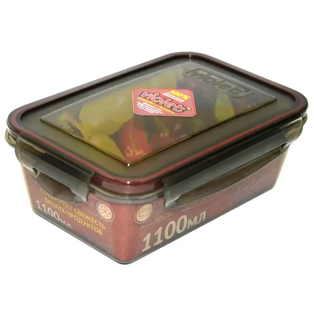 Емкость из пищевого пластика VIOLET объемом 1,1л для хранения продуктов питания и готовых блюд. Крышка оснащена 4мя защелкивающимися замками для фиксации за корпус и силиконовым уплотнителем по внутреннему периметру. Это обеспечивает герметичное закрытие для защиты от протекания и распространения возможных запахов пищи.