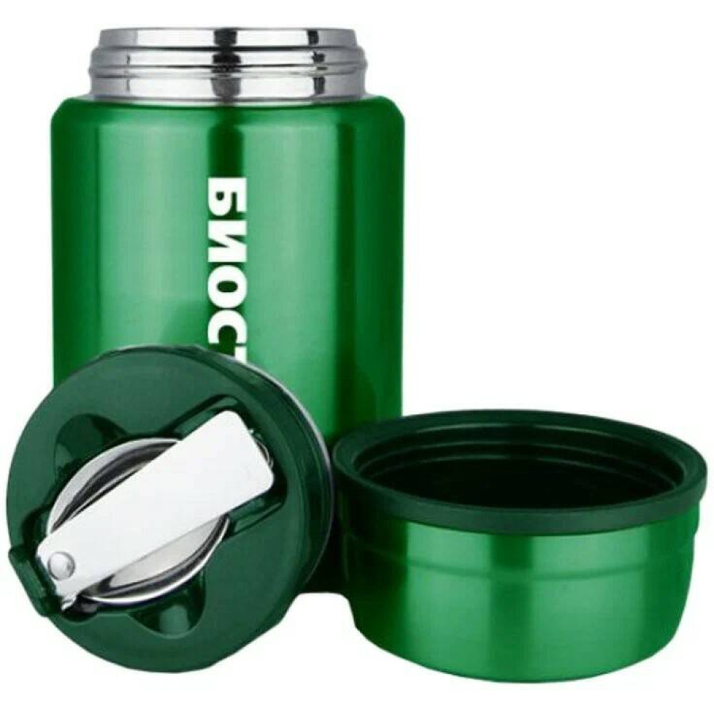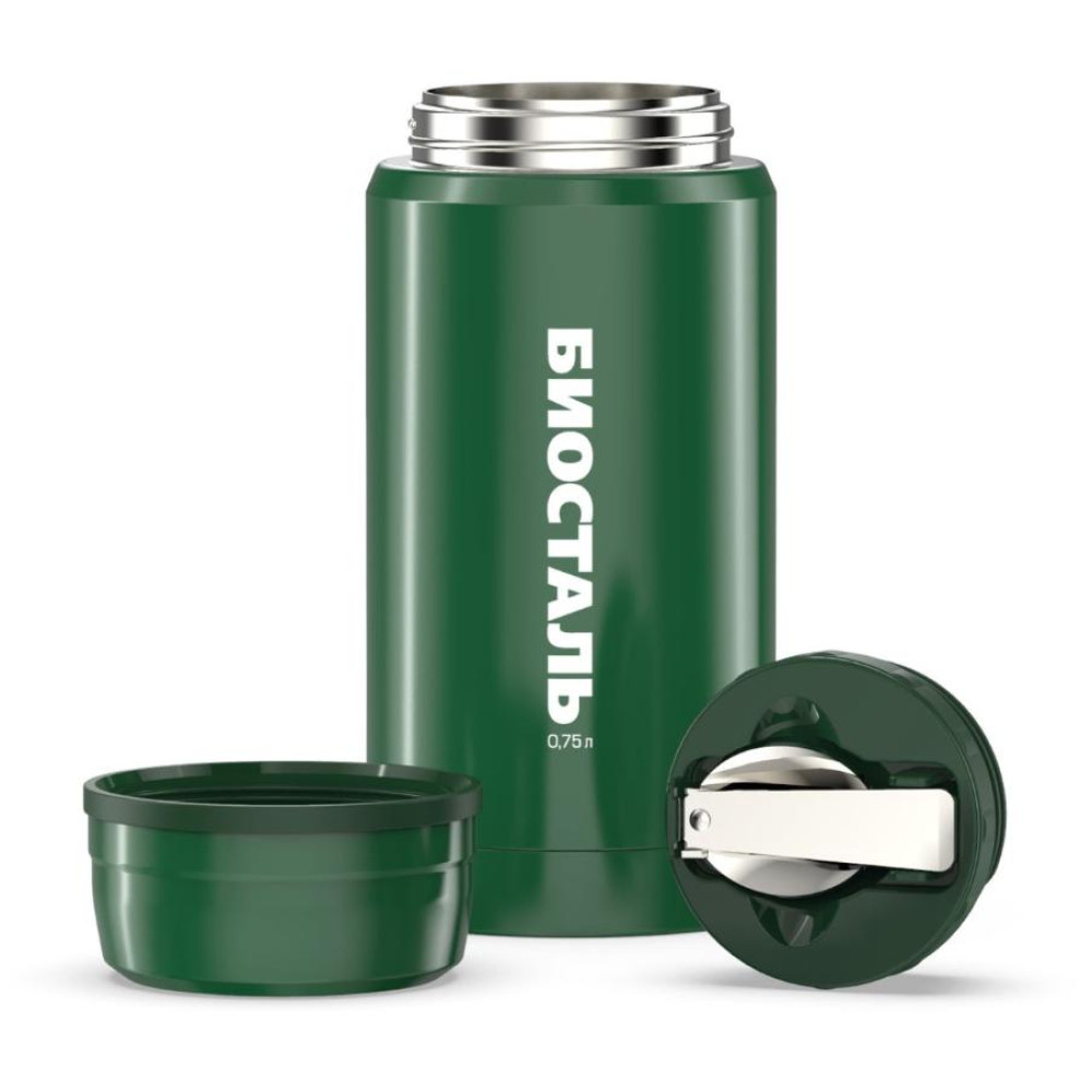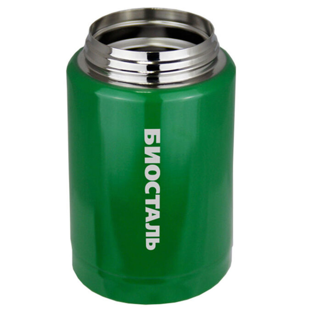 Пищевой термос с широким горлом NTS-750G БИОСТАЛЬ исполненный в стильном зелёном цвете, относится к серии "ОХОТА". Термосы с широким горлом предназначены для хранения горячей пищи (преимущественно вторых блюд), холодной пищи (замороженных продуктов, мороженного и пр.), фруктов и льда.