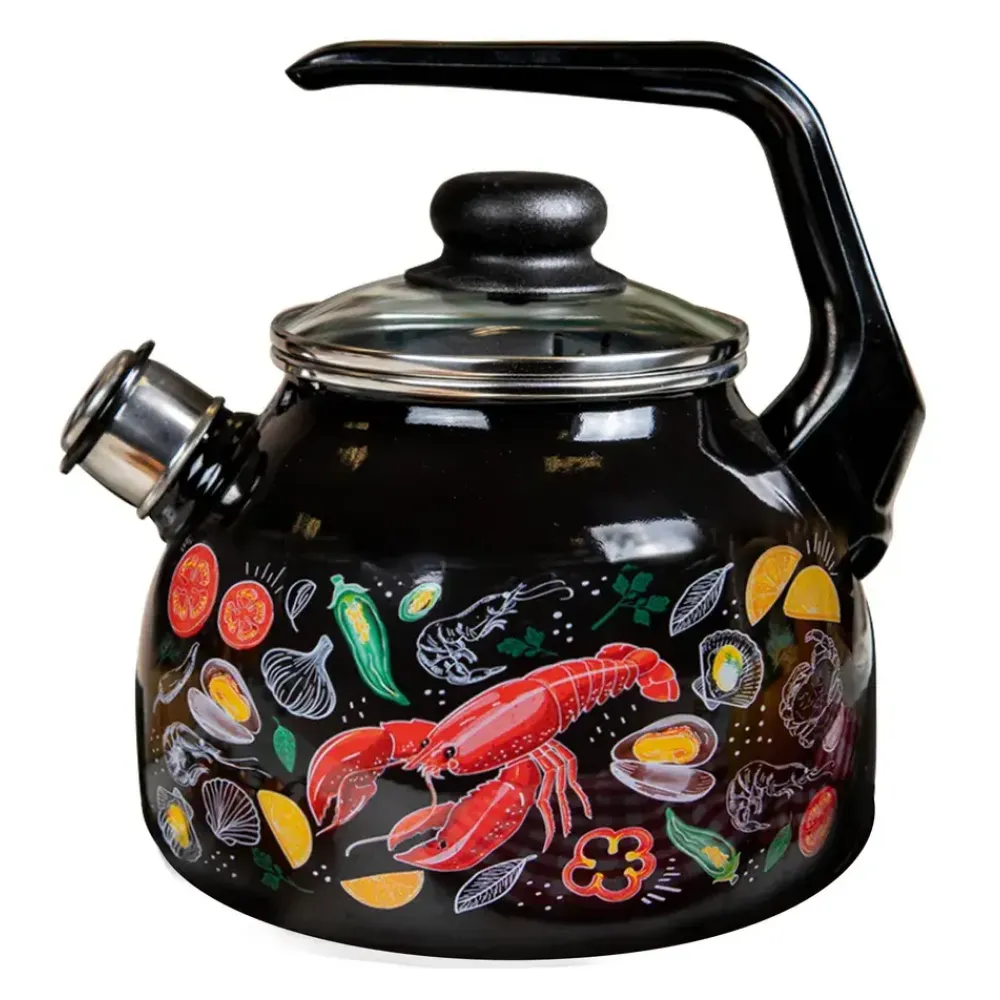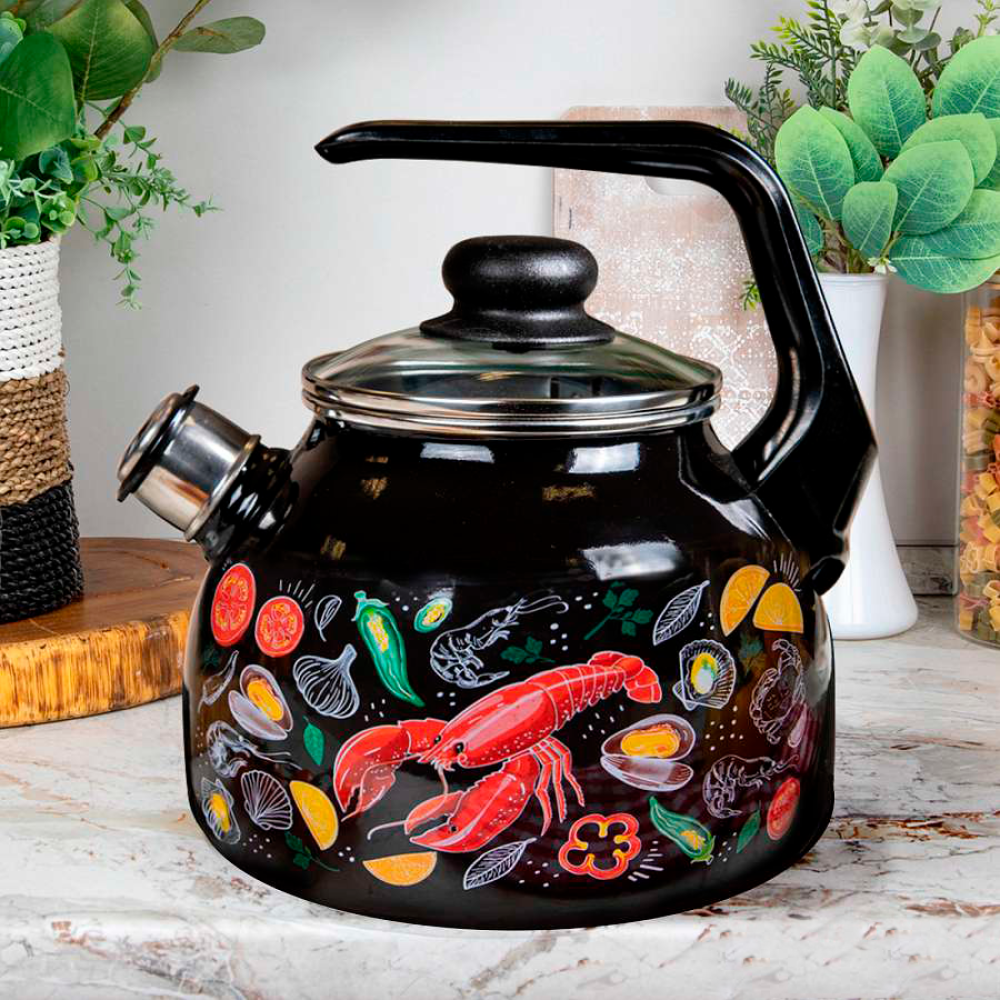 Чайник со свистком APPETITE Лобстер благодаря неповторимому красочному дизайну чайник украсит любую кухню. Подходит для плит любого типа, поэтому отличается практичностью. Хорошо держит температуру, благодаря чему вода дольше остается горячей. Чайник оснащен свистком, за счет чего вовремя сигнализирует о закипании.