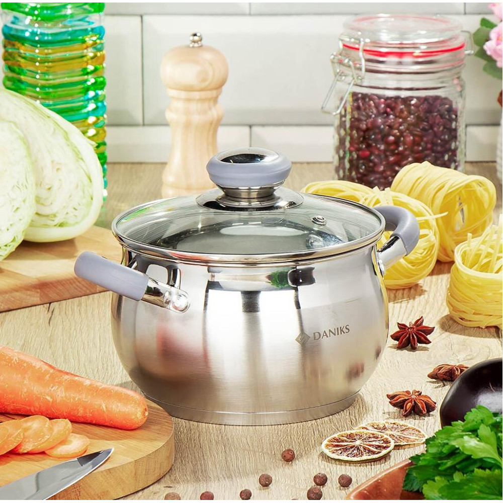 Кастрюля Daniks Модерн, нерж., индукция, серый, 2.9 л. (SD-18N)