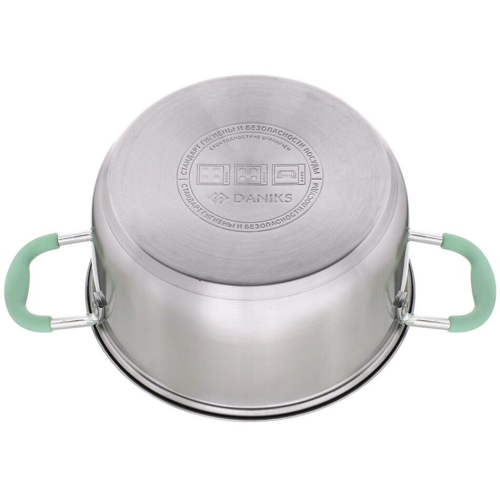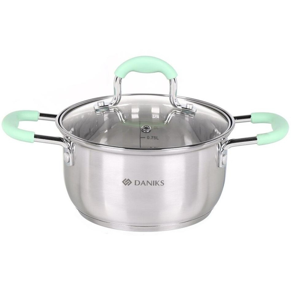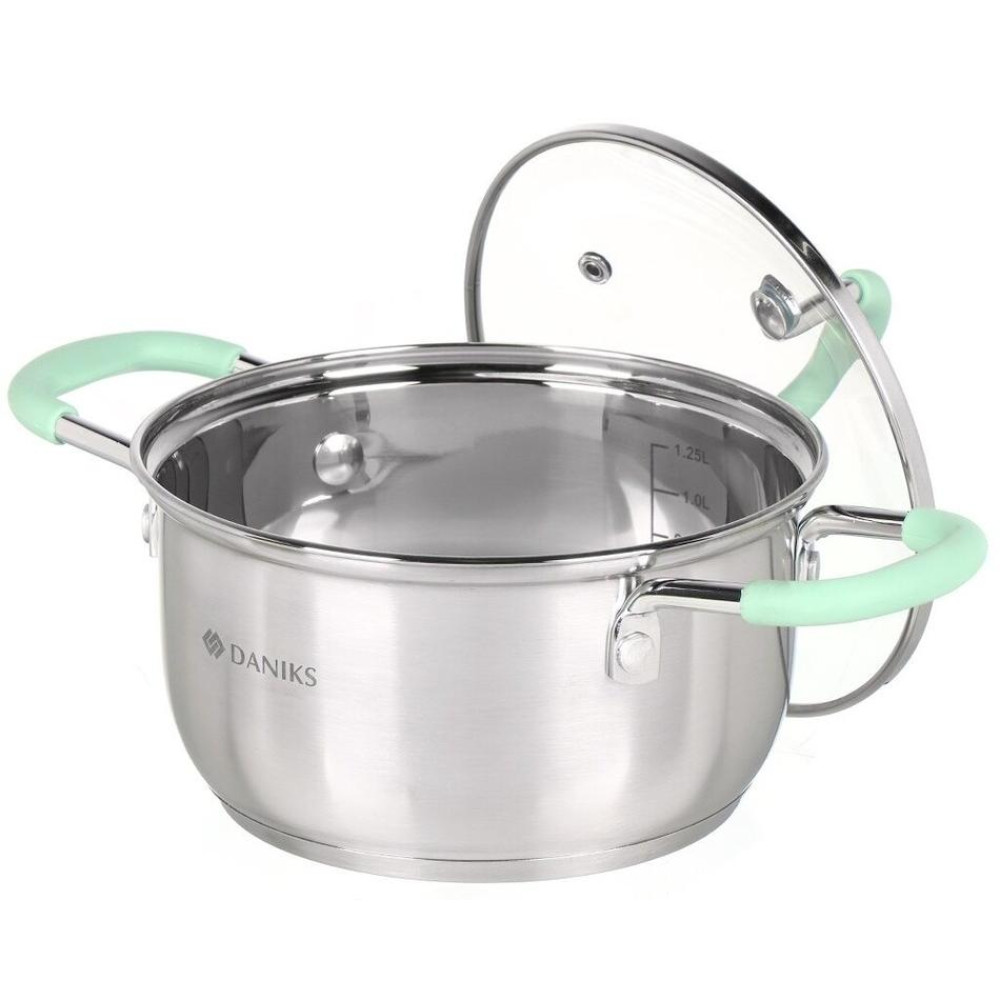 Кастрюля Daniks Гринери, нерж., индукция, силикон. ручки мятные 1,7 л. (SD-23-16)