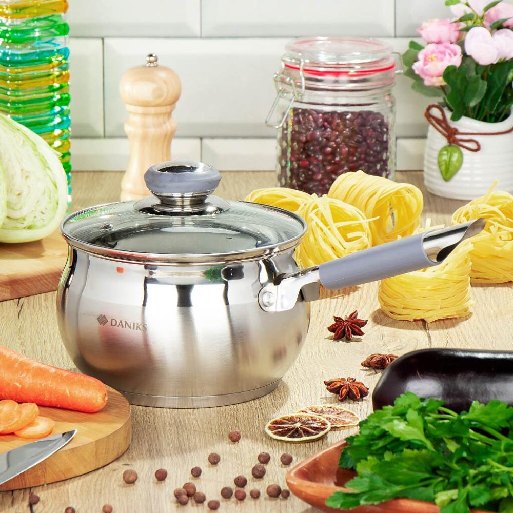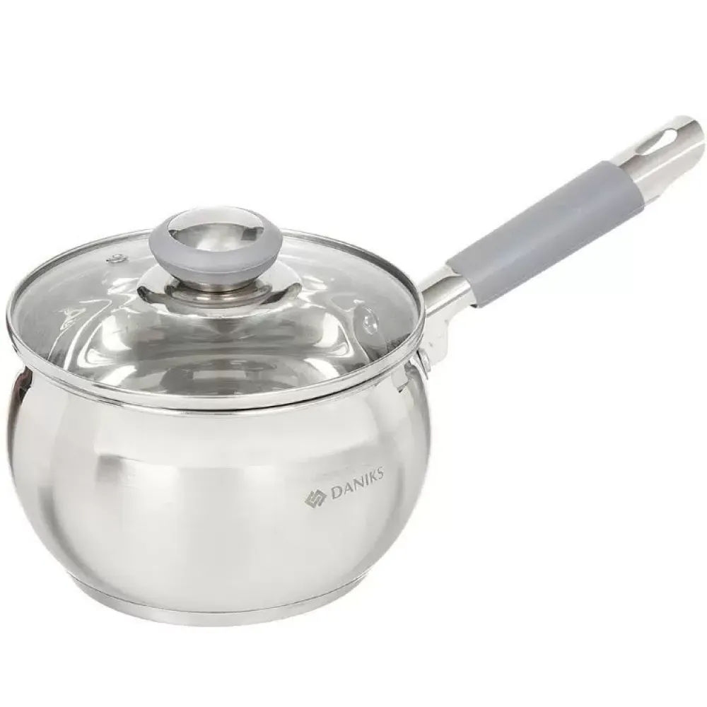Ковшик Daniks Модерн выполнен из высококачественной нержавеющей стали. Крышка из прозрачного стекла с клапаном для выпуска пара, позволяет контролировать процесс приготовления пищи. Металлическая ручка удобна, прочна и не нагревается при использовании посуды. Трехслойное капсулированное дно равномерно прогревается и долго удерживает тепло.