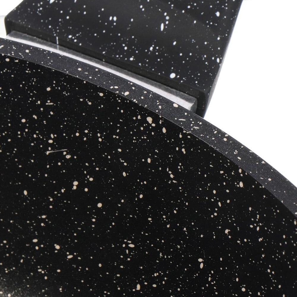 Корпус посуды изготовлен из литого пищевого алюминия. Утолщенное дно 6 мм и стенки 4 мм рационально распределяют тепло, что позволяет продуктам готовиться быстро и равномерно. Дно посуды крашеное, что облегчает уход. Сковороды можно использовать на газовых, электрических, стеклокерамических, индукционных плитах. Бакелитовая ручка с покрытием Soft Touch не нагревается и не скользит.