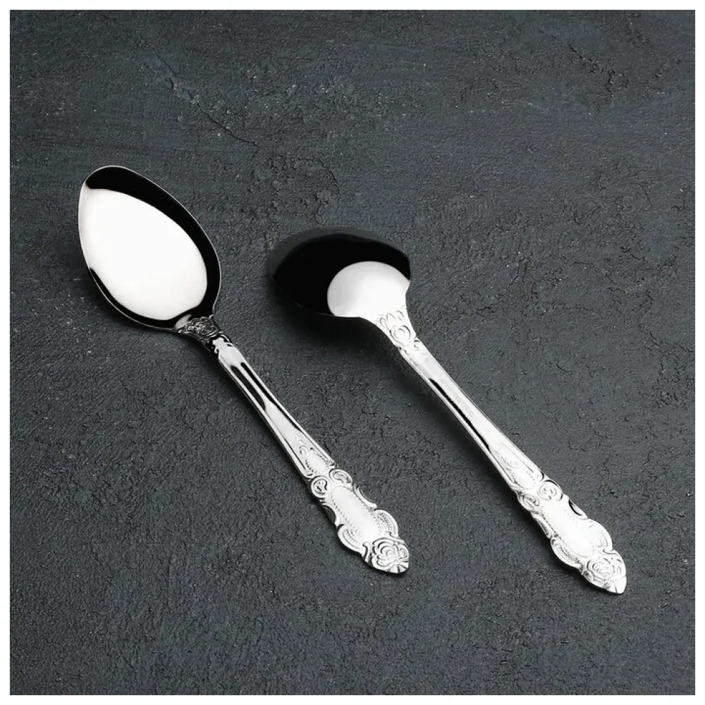 Набор столовых приборов «Русиано» выполнен из нержавеющей стали. Набор станет не только украшением праздника, но и подойдёт для ежедневного использования. Ложки в наборе имеют лаконичный дизайн и превосходные эксплуатационные свойства.