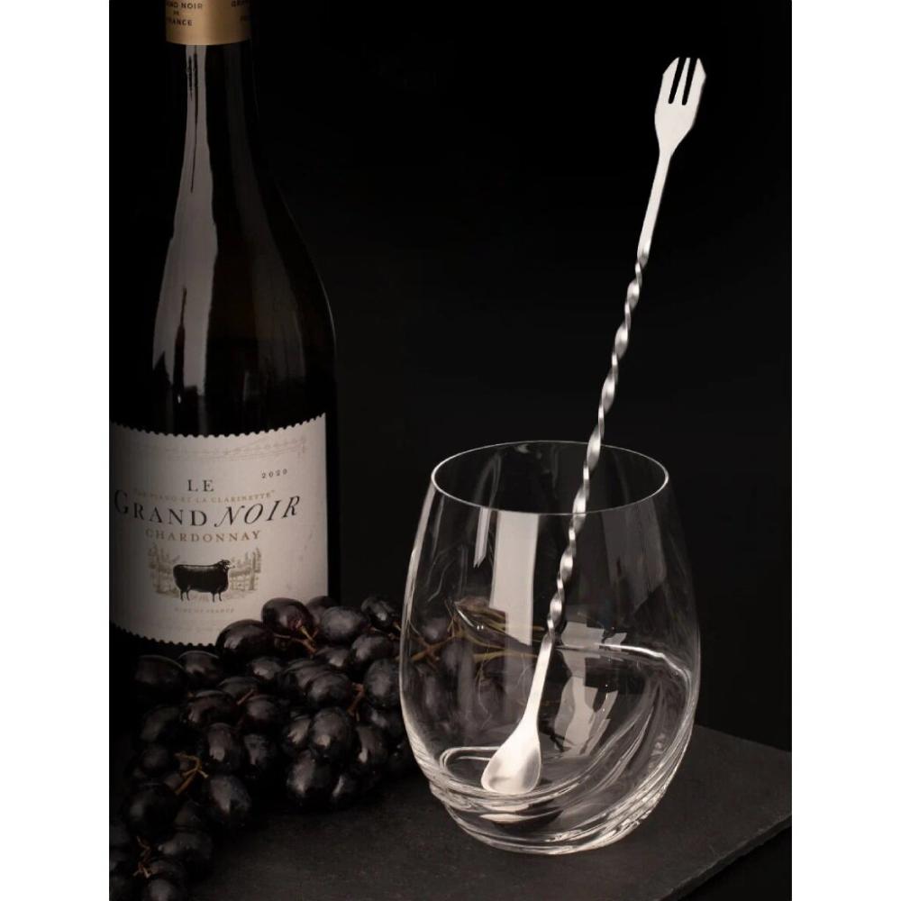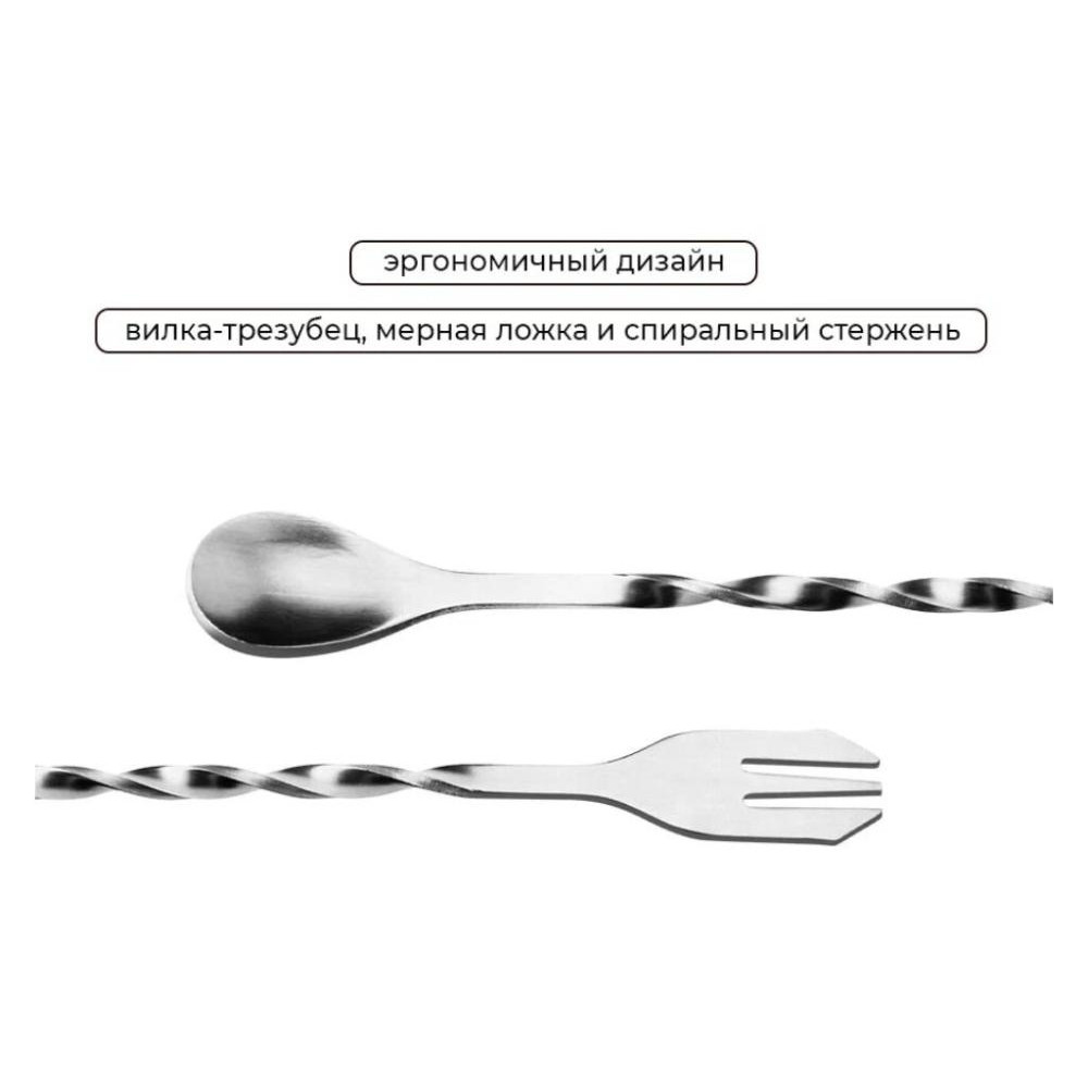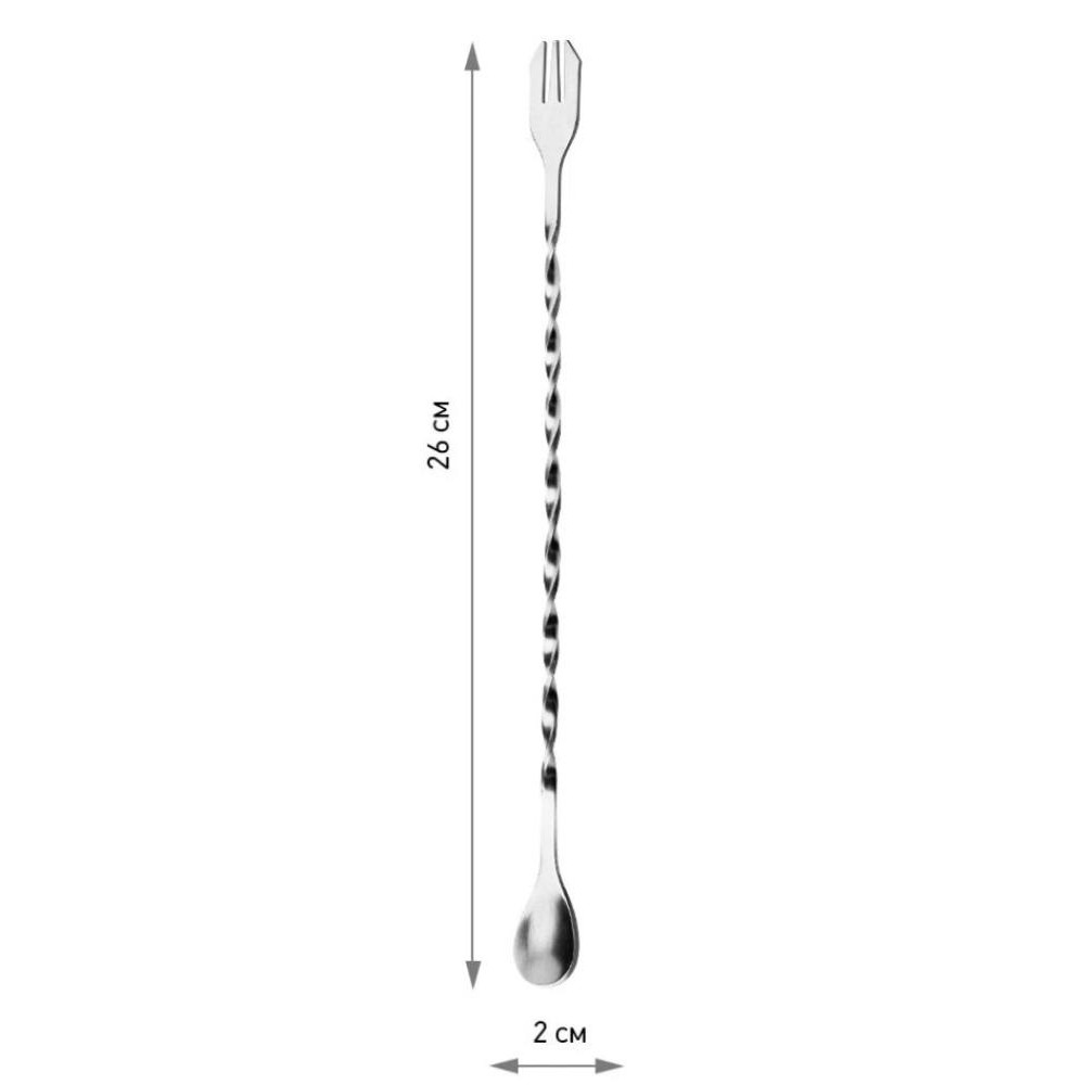 Ложка-вилка предназначена для перемешивания напитков в стаканах с высокими стенками и для приготовления многослойных коктейлей.
