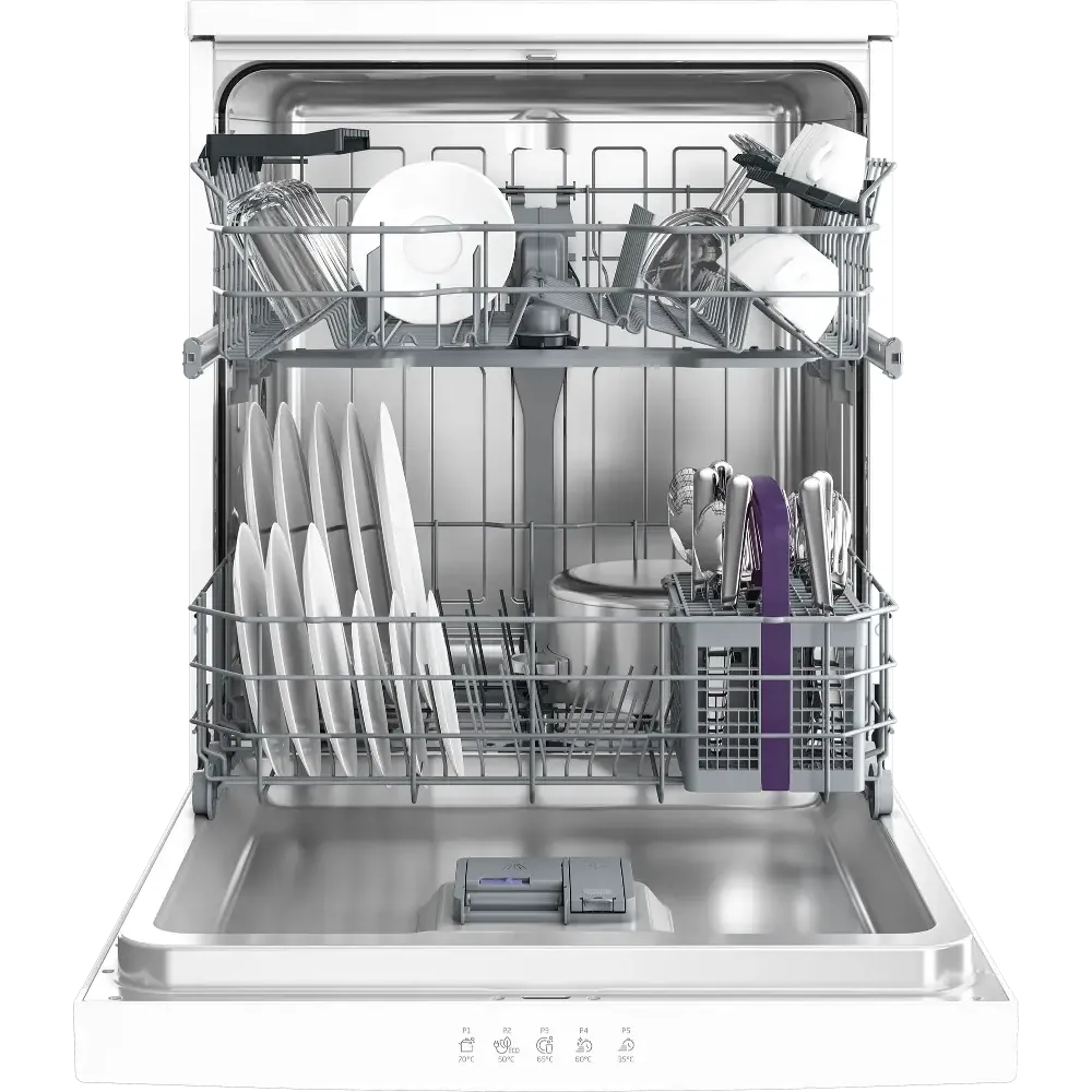 Посудомоечная машина BEKO DVN053R01W белого цвета шириной 60 см. Рассчитана на 13 комплектов посуды. Оснащена 5 встроенными программами мытья, включая экономичную и интенсивную, а также имеет функцию отложенного старта через 3, 6 или 9 часов.
