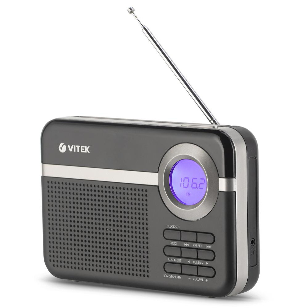 Радиоприемник Vitek VT-3592 со встроенными часами будет не только транслировать ваши любимые песни и радиопередачи, но и будить по утрам. Помимо функции будильника VITEK VT-3592 отличают довольно компактные размеры, так что он наверняка будет прекрасным спутником и вне дома: например, на даче или на природе. Наличие УКВ и FM позволит вам без труда настроится на нужную волну, а возможность присоединить наушники – слушать радио в транспорте или других общественных местах.