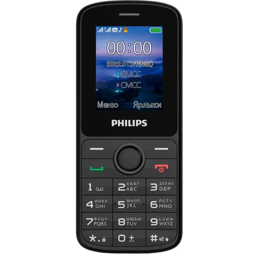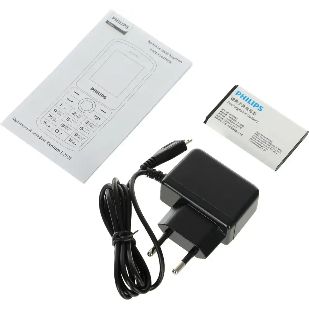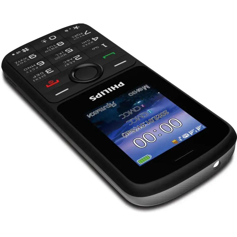 Сотовый телефон Philips E2101 черный - – удобный моноблок небольшого размера, который легко поместится в кармане или на дне сумки, чтобы его владелец не остался без связи в неподходящий момент.