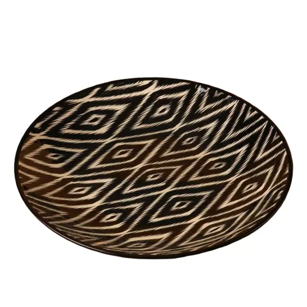 Большое сервировочное блюдо привлекает взгляды своим уникальным дизайном. Внимание к деталям и высокое качество глины делают его тарелкой, которая будет служить вашей семье на протяжении многих лет. Риштанская керамика издревле изготавливается прославленными мастерами с особым вниманием к каждому изгибу и орнаменту. Благодаря этому, вы получаете не только функциональный предмет, но также источник гордости и яркое изображение ваших вкусовых предпочтений.