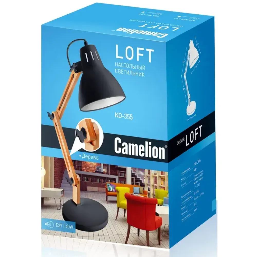 Лампа настольная CAMELION KD-355 C01 подойдет в качестве дополнительного источника освещения в офис, спальню или на рабочей зоне, оборудованной в домашних условиях. Интересный дизайн сделает устройство ярким акцентом. Сочетание подставки и конусообразного плафона с деревянным корпусом отлично впишется практически в любой интерьер.