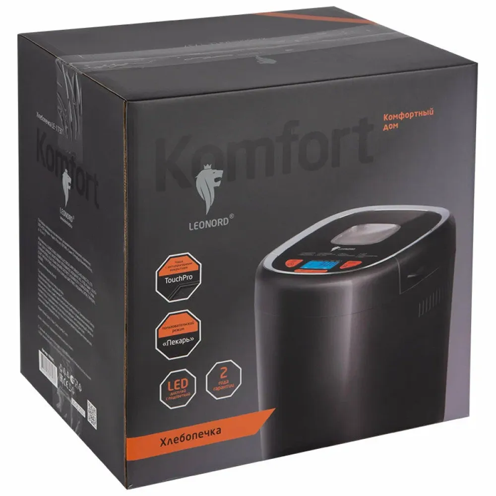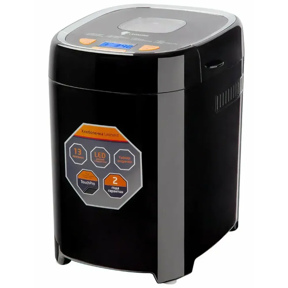 Хлебопечь LEONORD LE-1737 отличается компактностью и экономичностью, потребляя всего 550 Вт. Прибор позволяет создать полноценную буханку весом до 900 г. Для простой очистки прямоугольная форма из комплекта легко снимается. К емкости с антипригарным покрытием продукты не прилипают. Для автоматизированной готовки предусмотрено 13 программ, среди которых можно выделить режим для цельнозерновой, французской и сладкой выпечки.