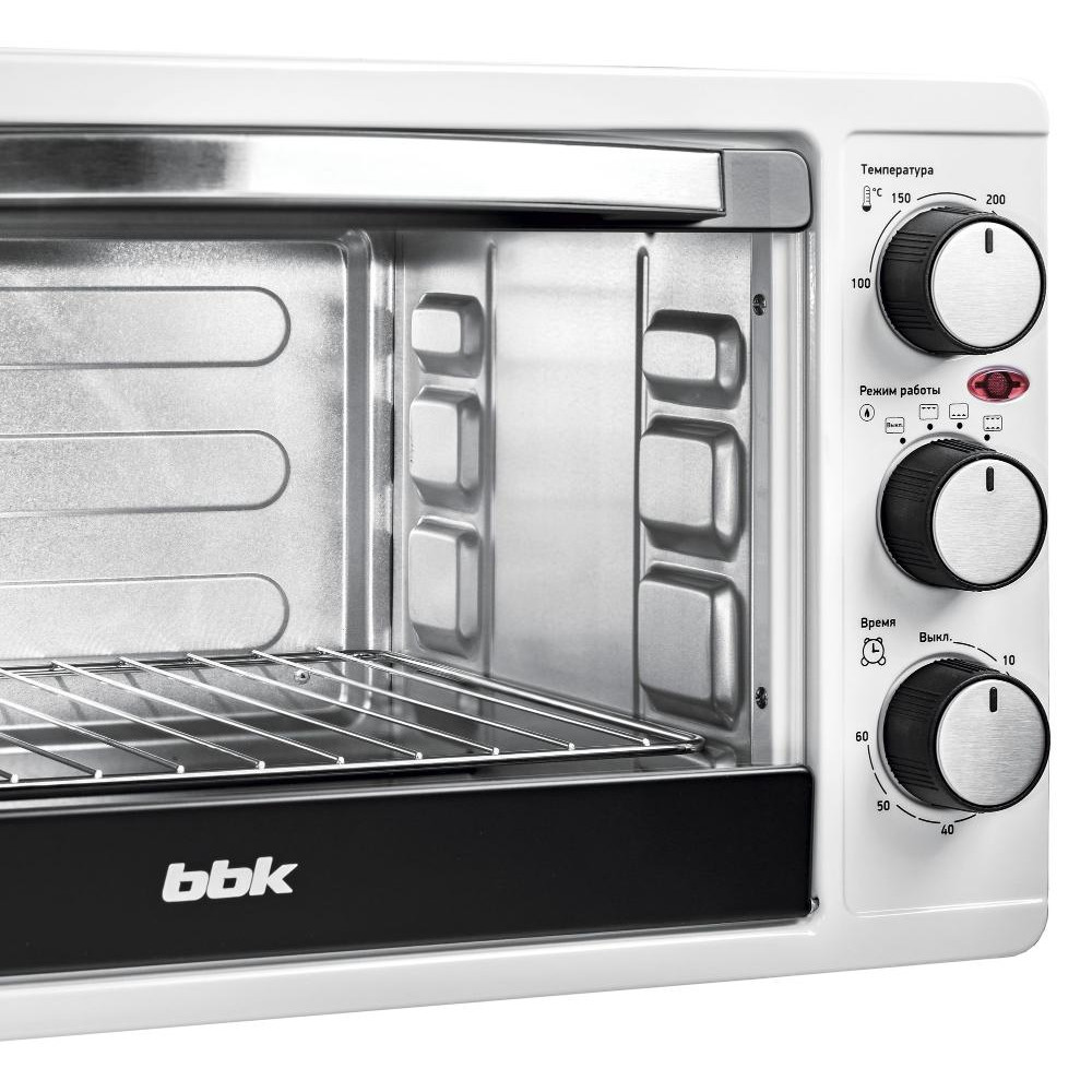 Модель BBK OE2344M работает от стандартной электрической сети с напряжением 220 В. Световая индикация оповещает пользователя о начале работы. Для комфортного открывания дверцы есть эргономичная ручка. Внутреннее покрытие из нержавеющей стали не выделяет опасных для организма веществ при нагреве, а также быстро очищается от пригоревшей пищи или пятен жира. Для безопасного извлечения противня или решетки в комплекте есть специальная ручка. Мини-печь может использоваться в качестве гриля. За устойчивость на любой поверхности отвечает основание с широкими ножками.