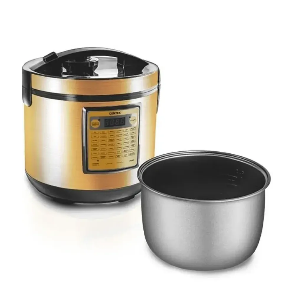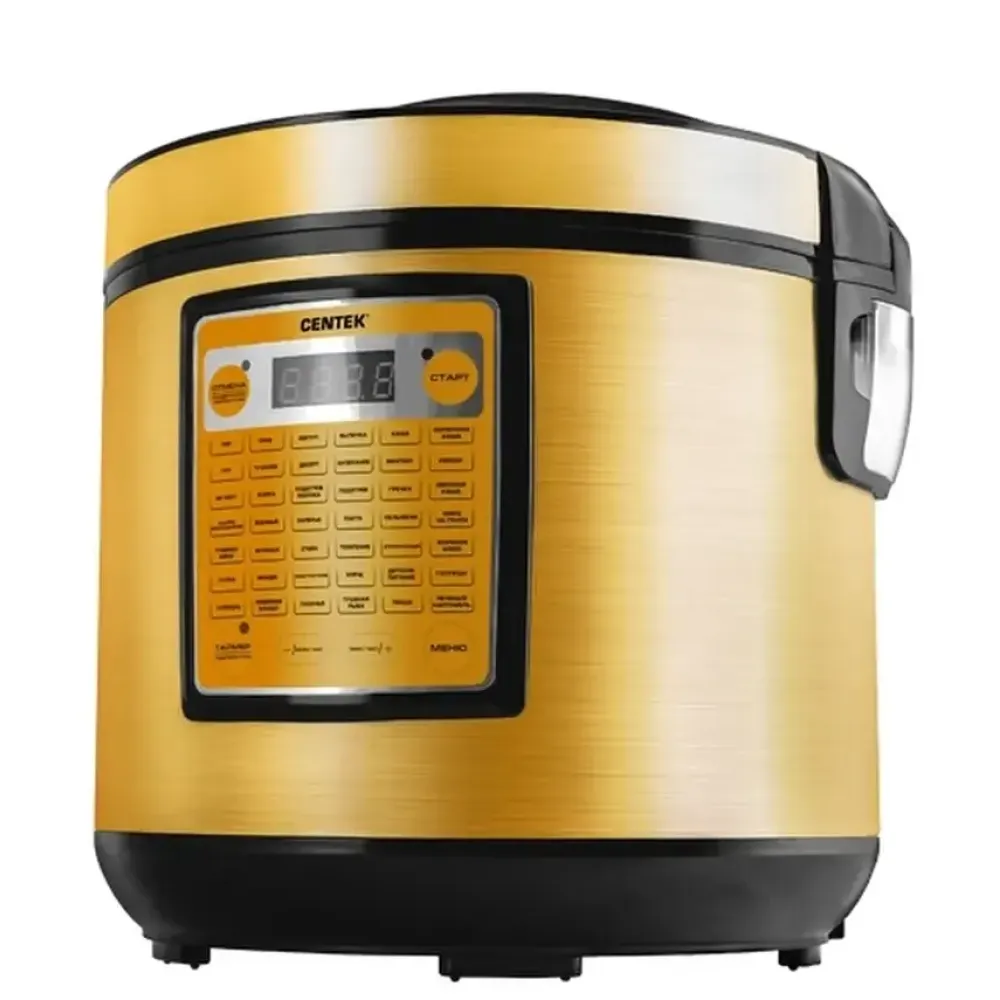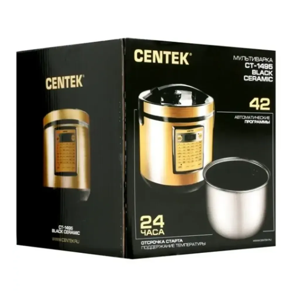 Стильная золотая мультиварка Centek CT-1495 идеально впишется в интерьер вашей кухни и поможет быстро и легко готовить вкусные и полезные блюда. Чаша с керамическим покрытием объемом 5 литров и компактный корпус мультиварки из металла и пластика просты в уходе. Прибор имеет 42 автоматические программы, что позволит выбрать оптимальный режим приготовления для каждого блюда.
