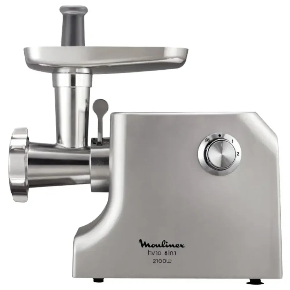 Мясорубка MOULINEX ME-858D отличается мощным двигателем (2100 Вт), хорошей функциональностью и лаконичным дизайном. Прибор гарантирует высокий уровень производительности: за минуту непрерывной работы он способен справиться с 5.5 кг мяса. Такой показатель позволяет использовать устройство в качестве оснащения не только домашней кухни, но и небольшого кафе. Длительному сроку эксплуатации и устойчивости прибора к нагрузкам способствует металлический корпус. Большинство деталей мясорубки также выполнено из металла.