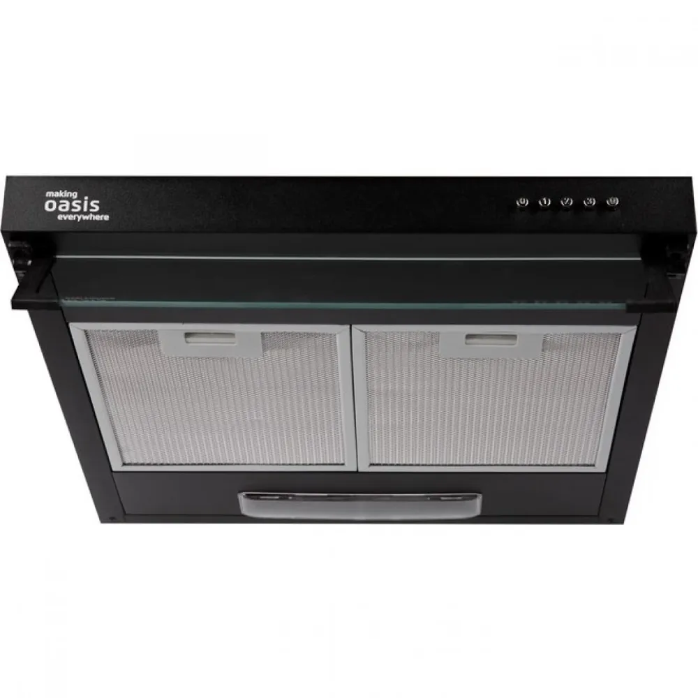 OASIS UP-50B поддерживает работу в двух режимах в зависимости от способа подключения. Режим «Отвод» подразумевает подключение вытяжки к отверстию вентиляционной шахты через гофрированный шланг либо пластиковый воздуховод. Такое решение обеспечивает удаление испарений, воздуха с жировыми частицами из помещения. Когда такое подключение невозможно, имеет место режим «Циркуляция». Воздух в этом режиме будет проходить через угольный фильтр вытяжки, очищаться, а после этого возвращаться в помещение. Прибор укомплектован жировым фильтром, а угольный фильтр необходимо будет приобретать отдельно.