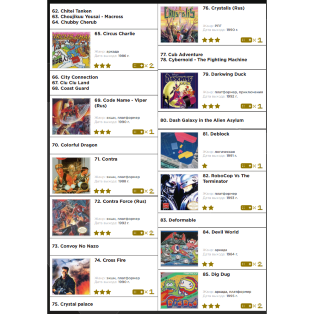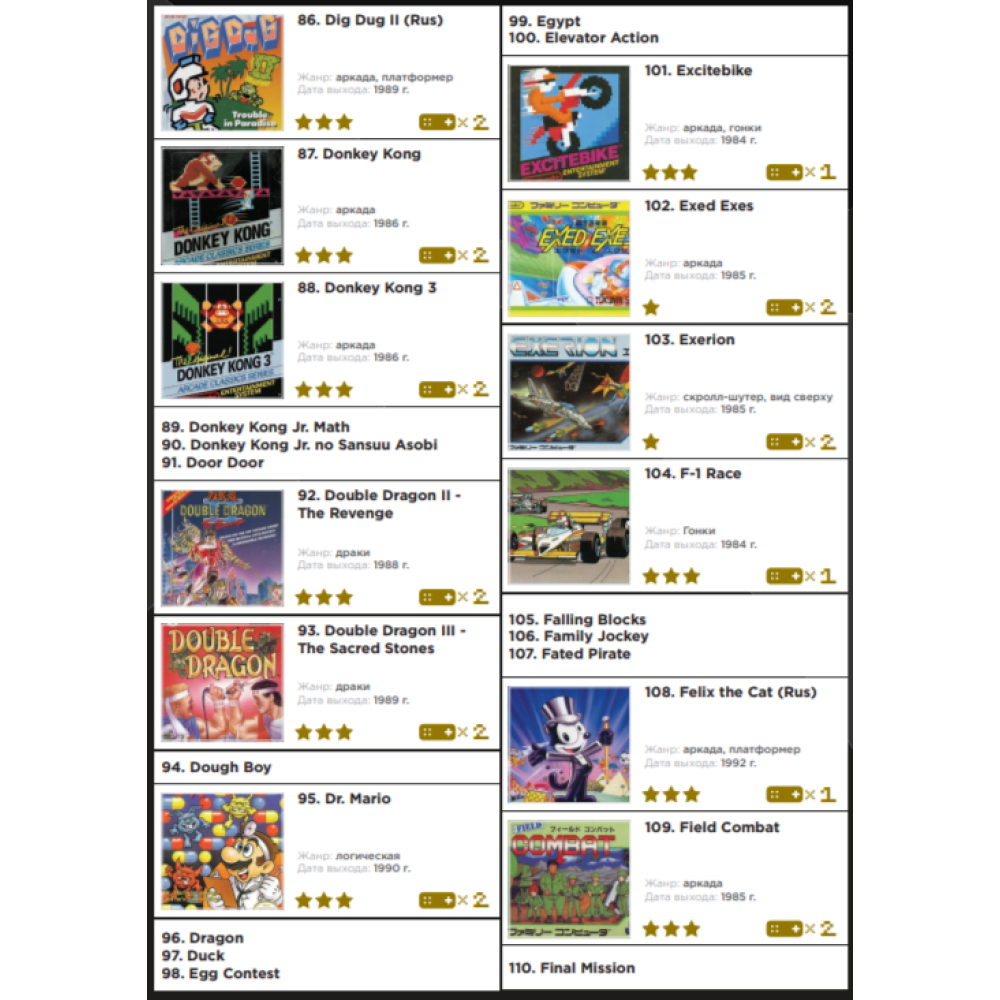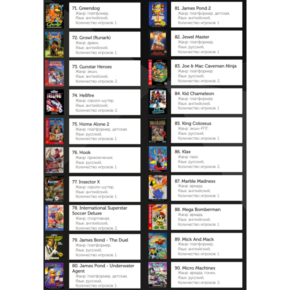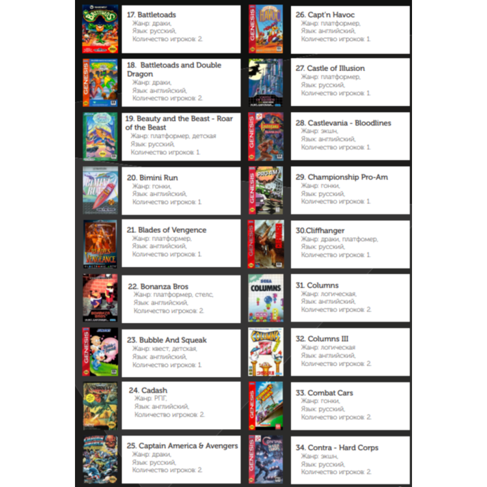 За счет этого список хитов и мировых бестселлеров пополнился не только привычными для 16-битной приставки Соником, героями Streets of Rage и Mortal Kombat, но и любимыми многими персонажами Марио, Черным плащом, котом Феликсом, Бомберменом, играми Танчики и Боевые жабы.