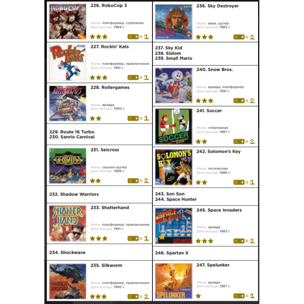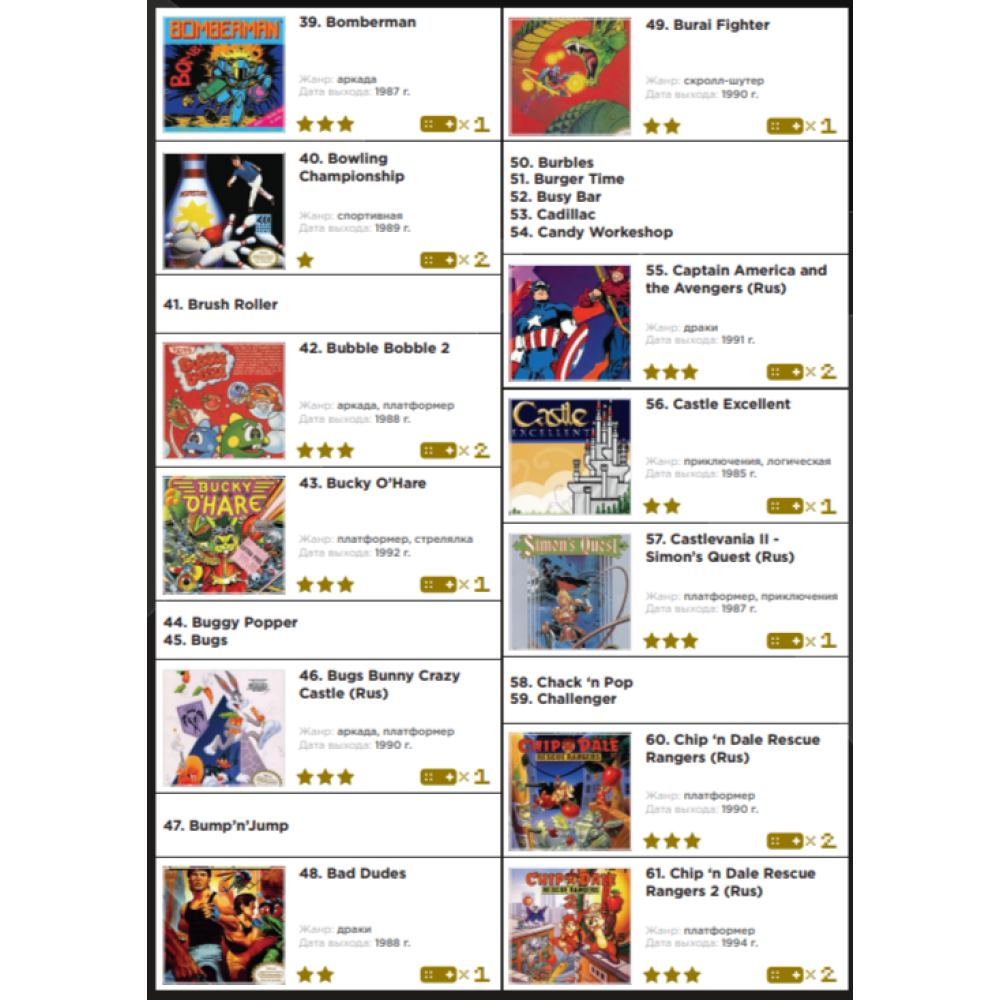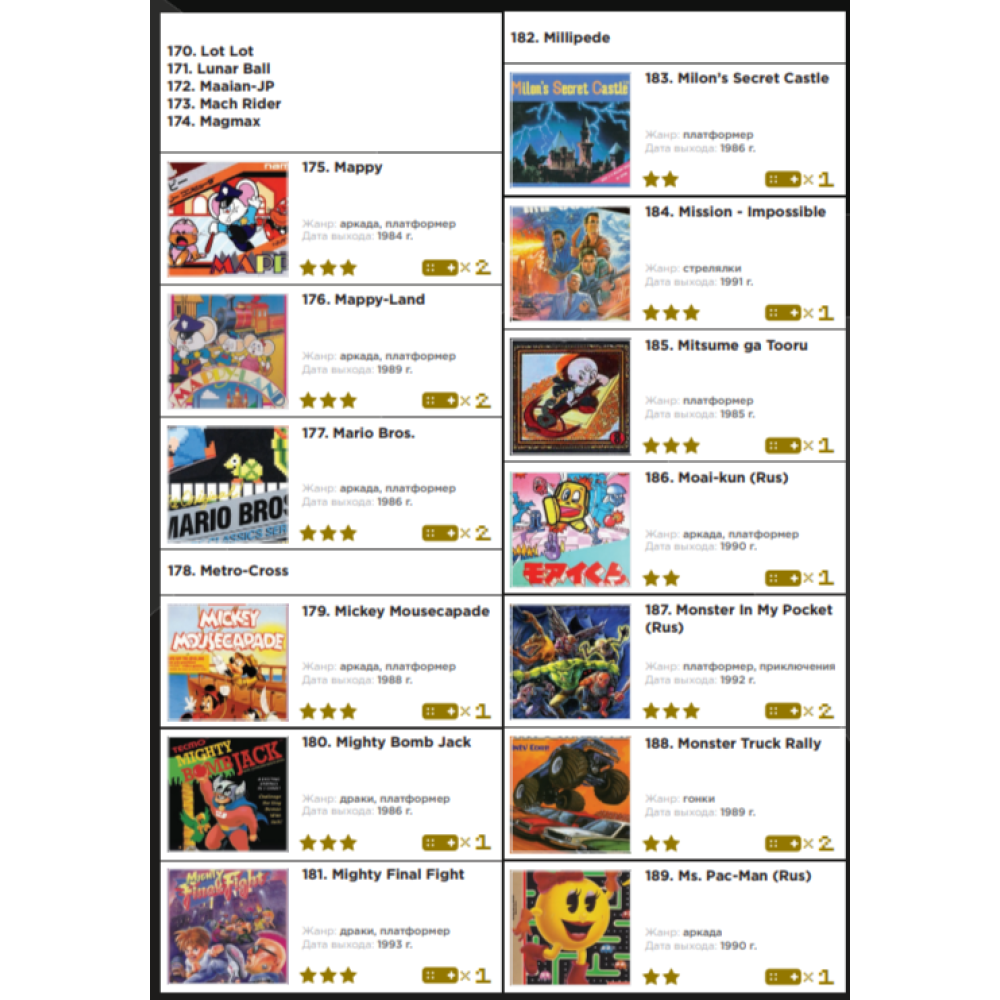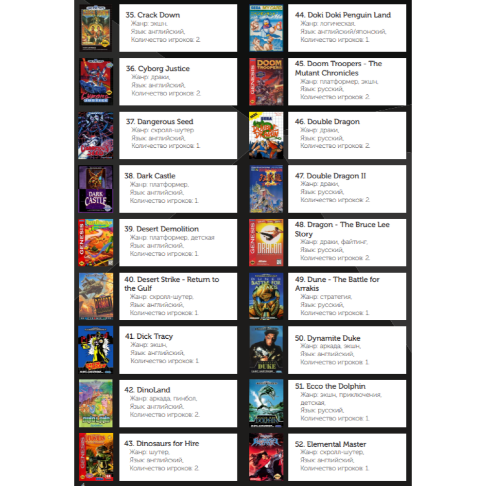 За счет этого список хитов и мировых бестселлеров пополнился не только привычными для 16-битной приставки Соником, героями Streets of Rage и Mortal Kombat, но и любимыми многими персонажами Марио, Черным плащом, котом Феликсом, Бомберменом, играми Танчики и Боевые жабы.