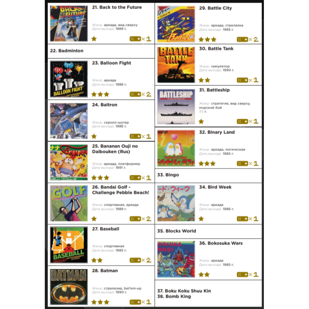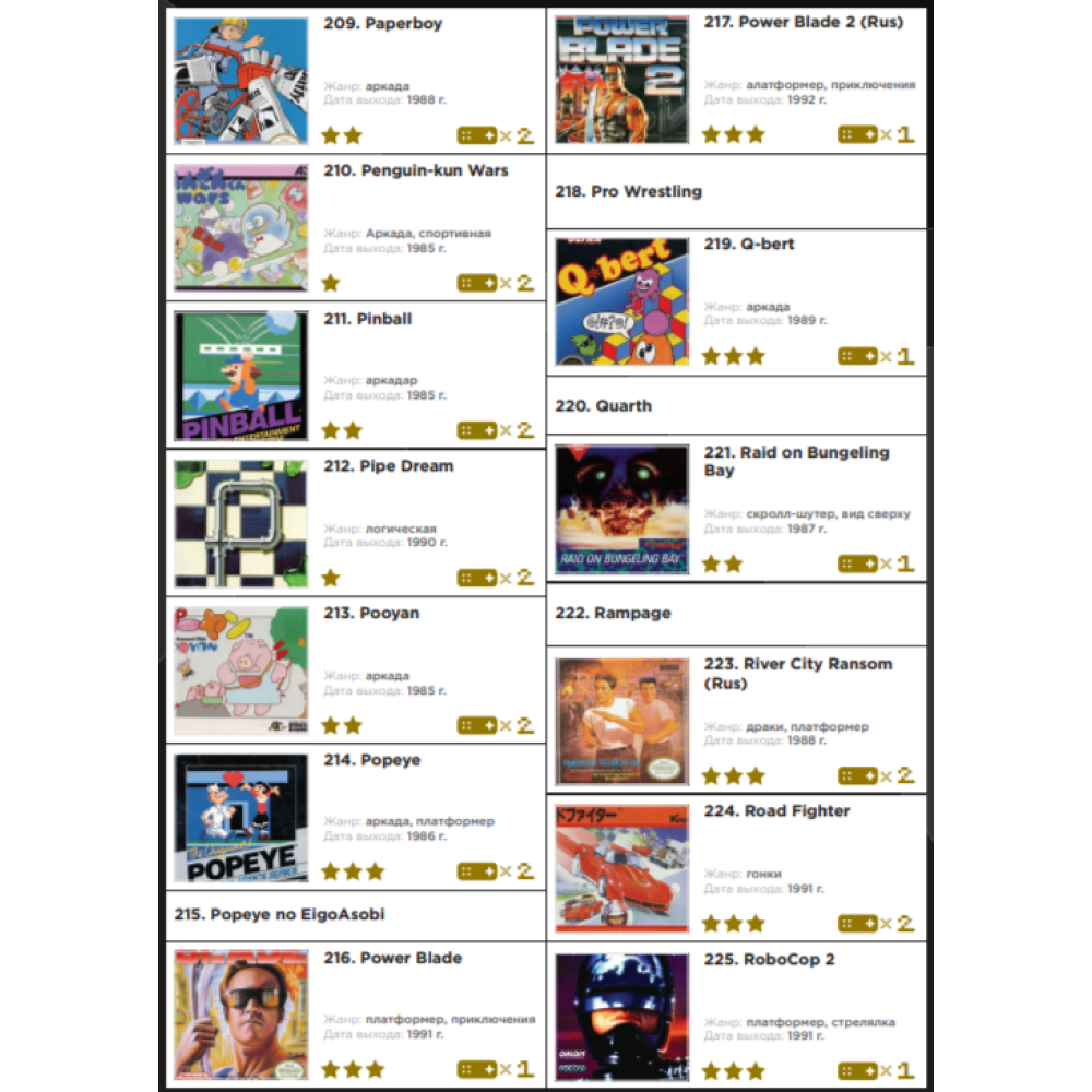 Комплектация | игровая консоль/2 джойстика/адаптер питания/HDMI кабель/каталог игр/инструкция по эксплуатации |